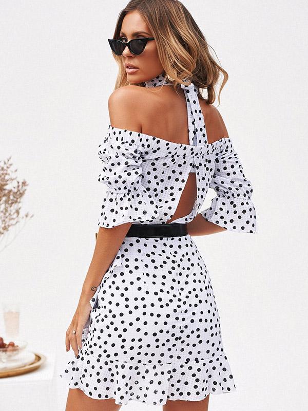 Off-the-shoulder Polka-dot Mini Dress