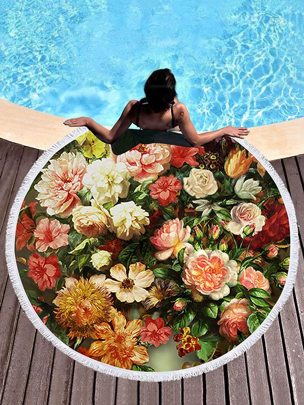 Oil Painting Flowers Beach Mats