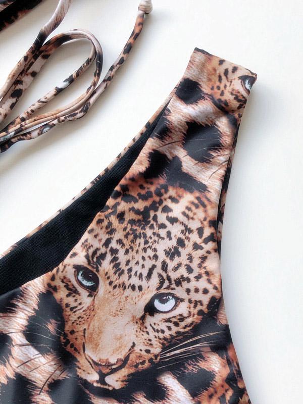 One-Shoulder Leopard-Print Split Bikini Swimsuit