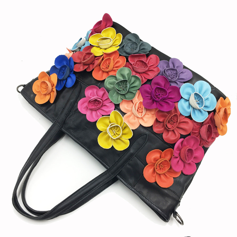 One shoulder messenger bag women's handbag color matching flower sheepskin bag