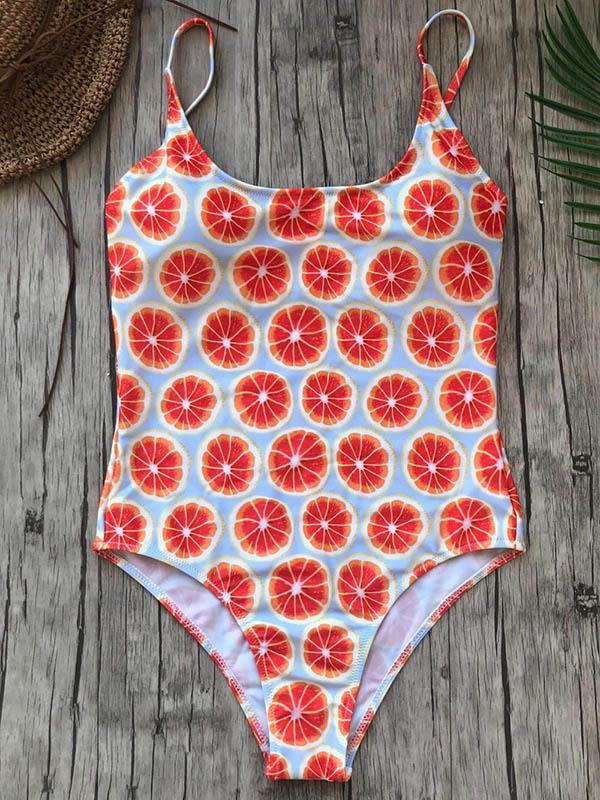 Orange Printed Spaghetti Strap One-piece Swimsuit