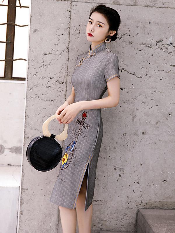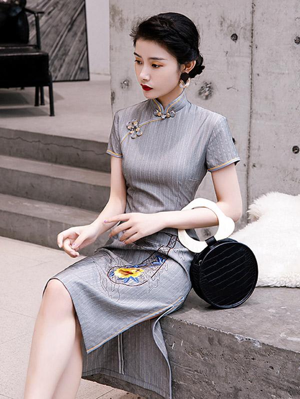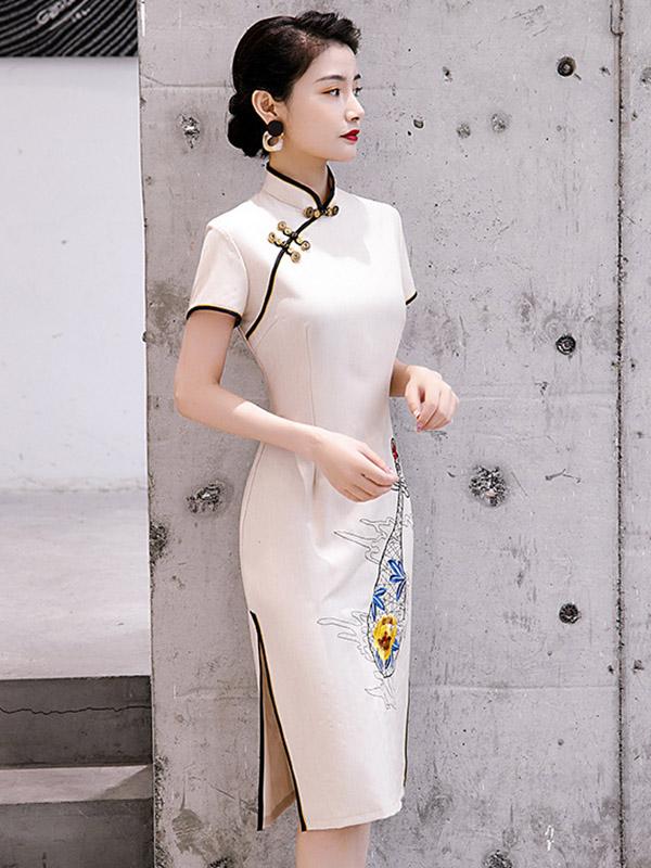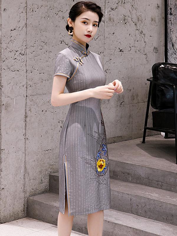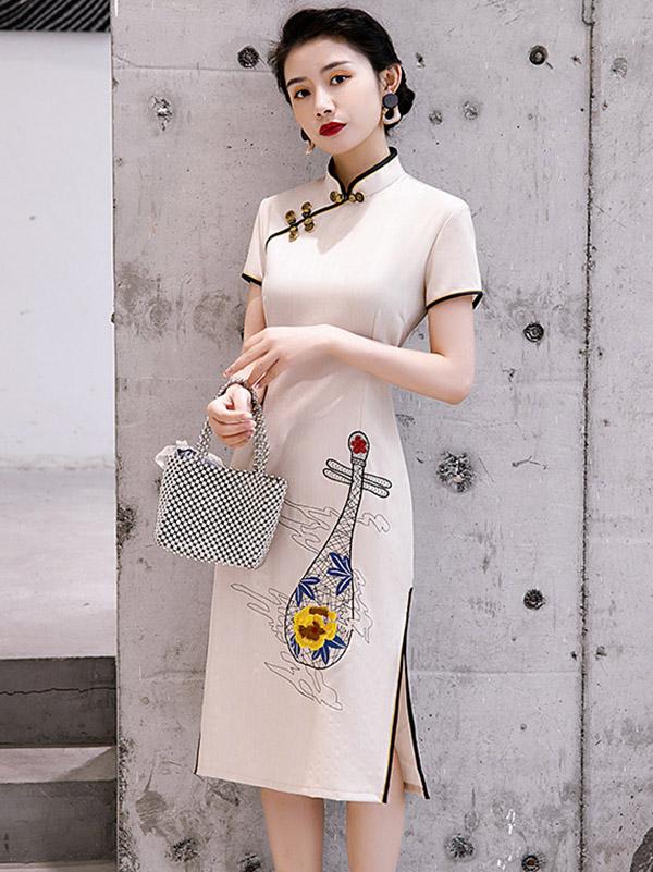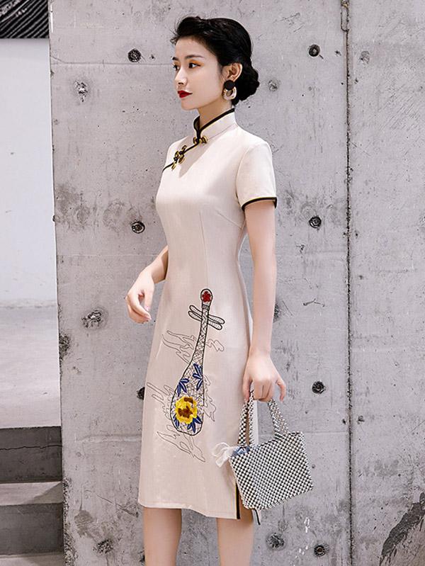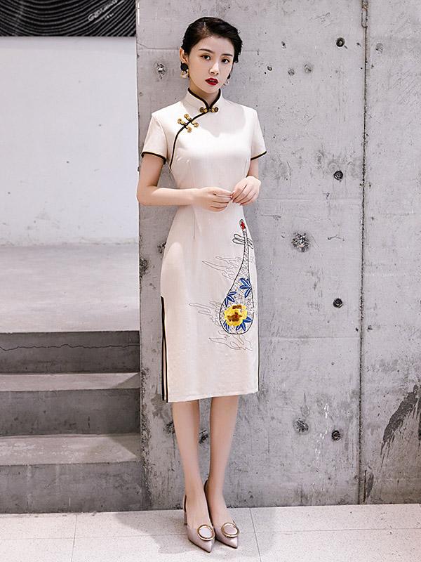 Original Applique Buckle Short Cheongsams