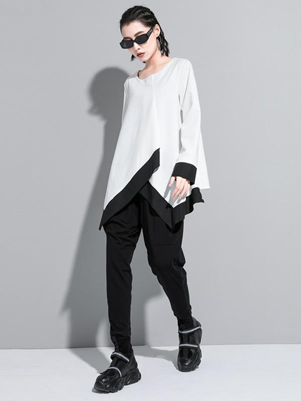 Original Asymmetric Split-Joint Round-Neck T-Shirt