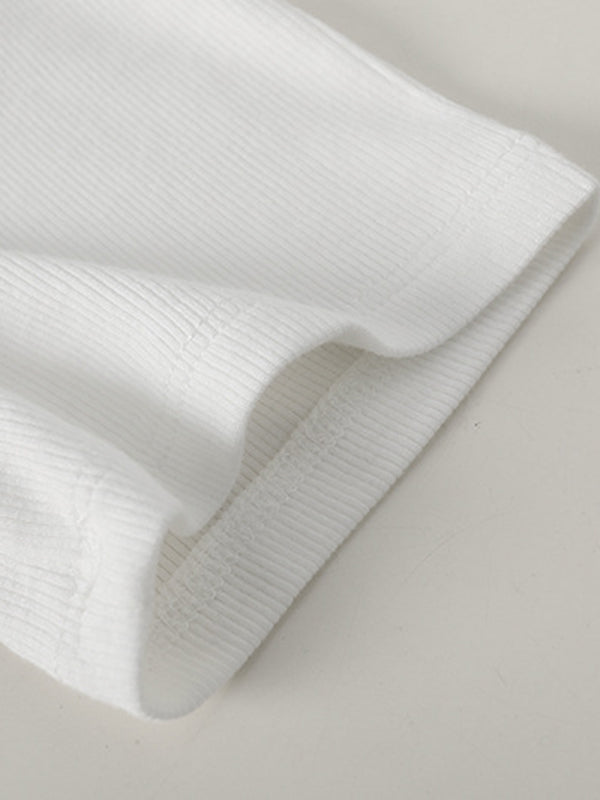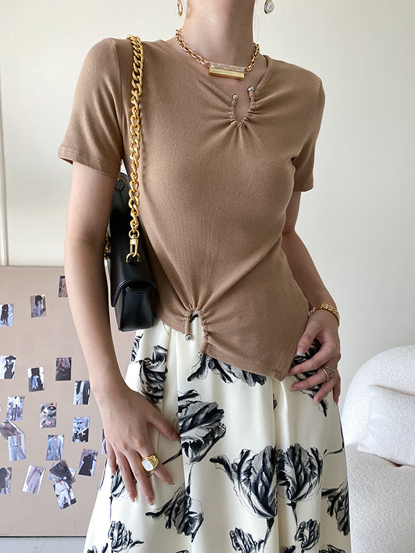 Original Casual Solid Color Pleated Skinny T-Shirt Top