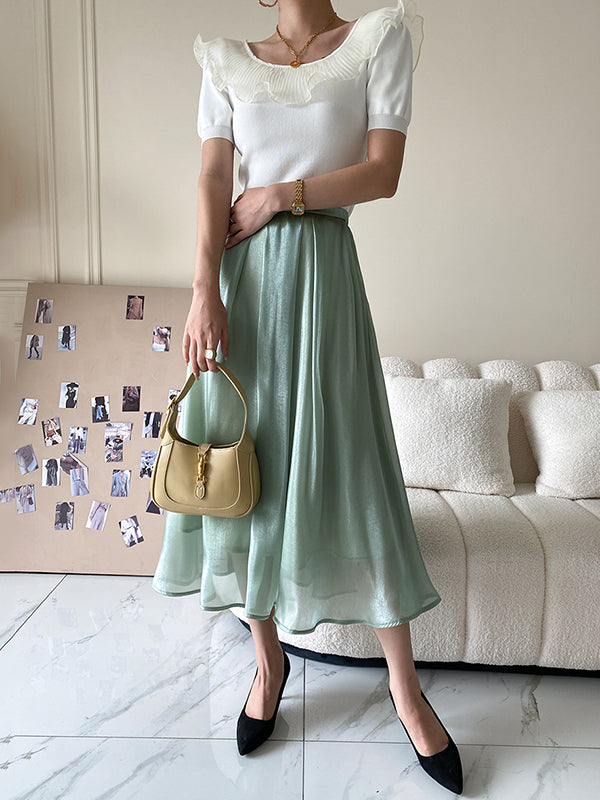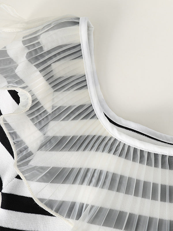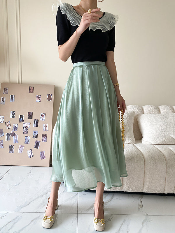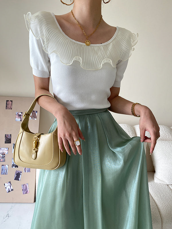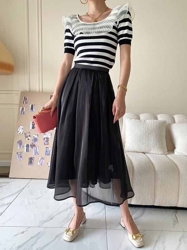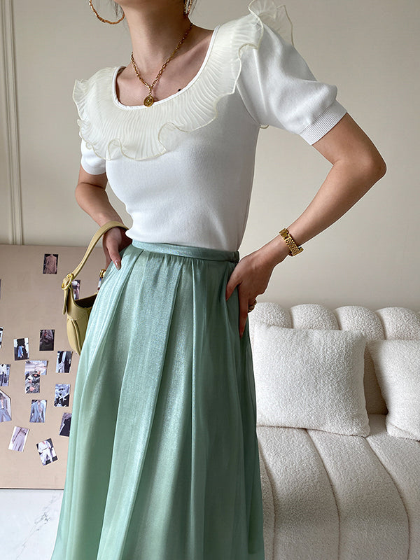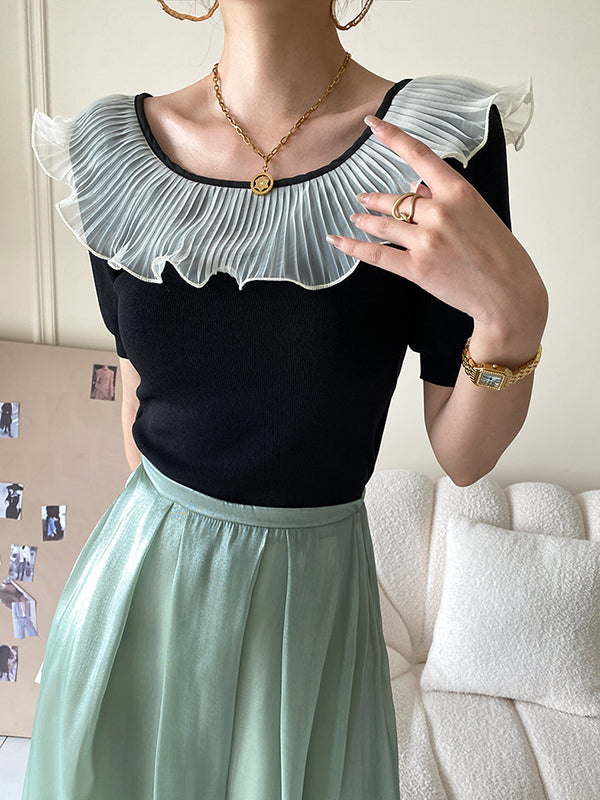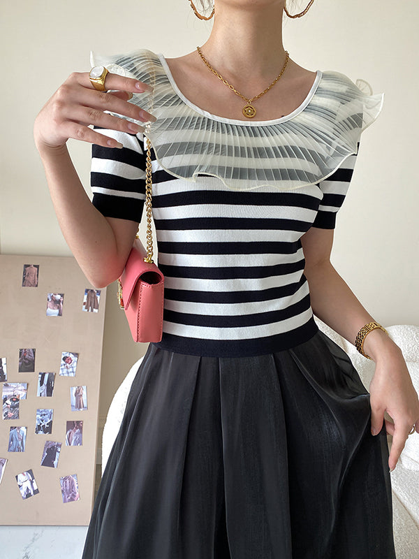 Original Chic Falbala Mesh Split-Joint T-Shirt Top