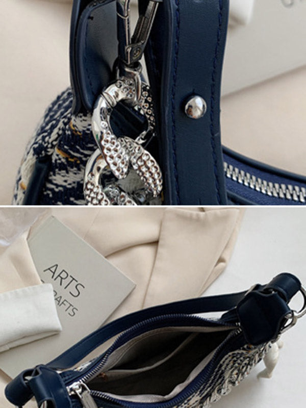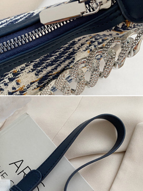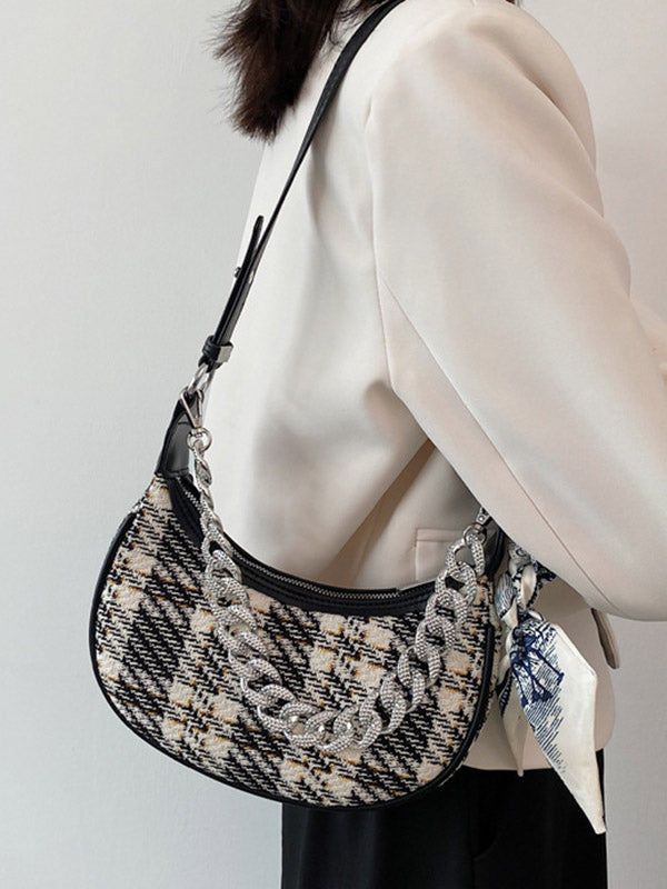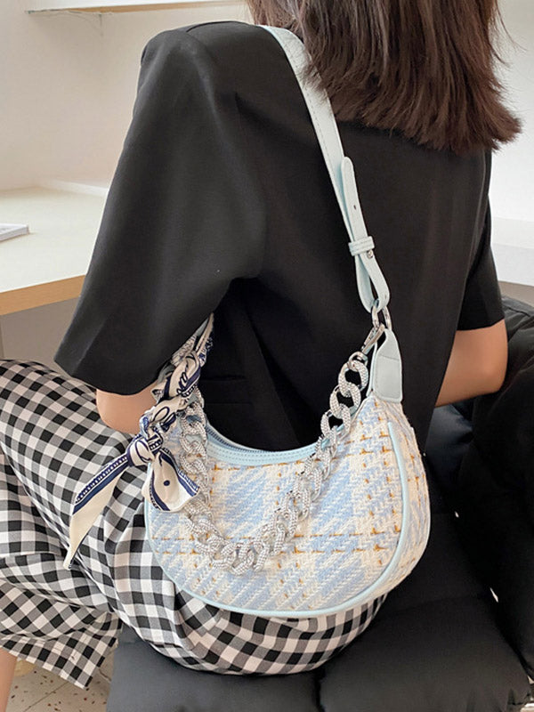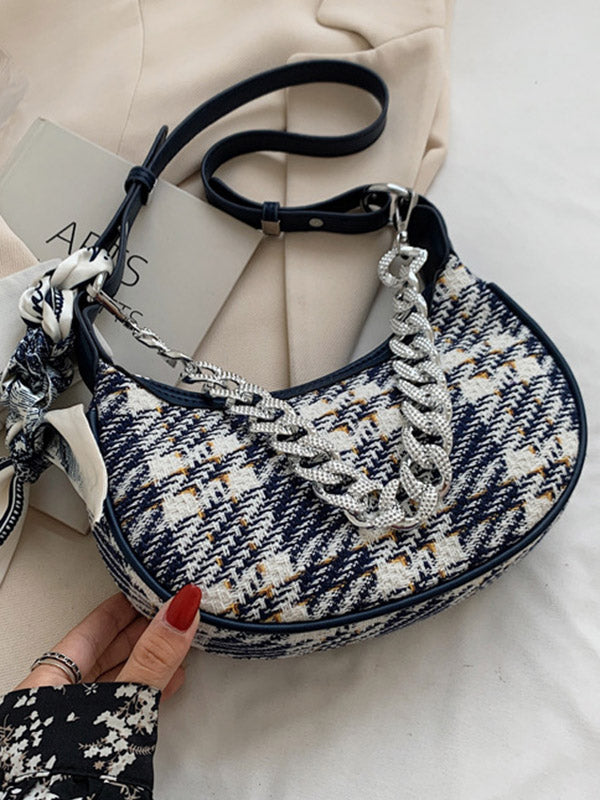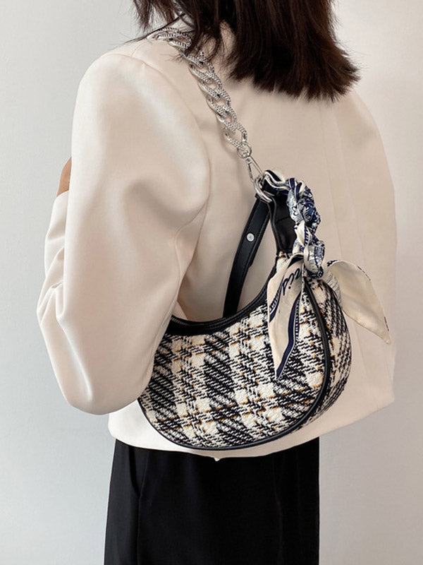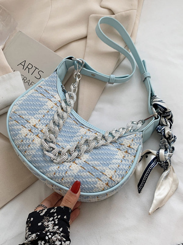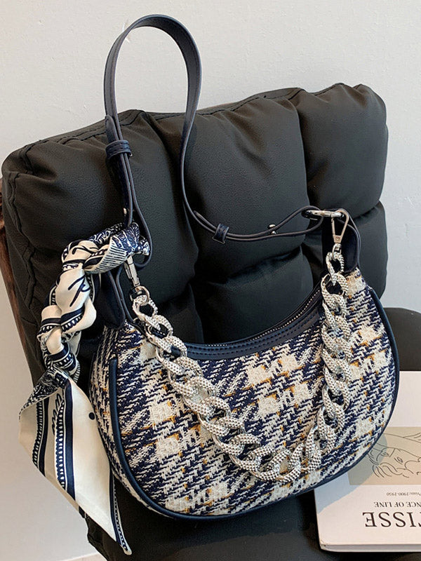 Original Chic Plaid With Chain&Scarf Zipper Canvas Shoulder Bag