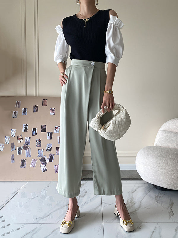 Original Contrast Color Puff Sleeves Cold Shoulder T-Shirt Top