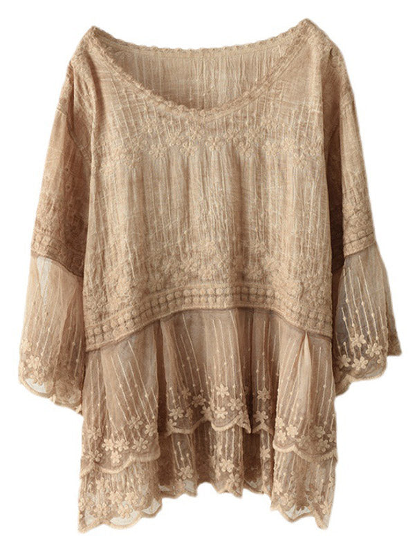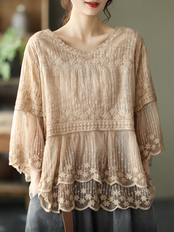 Original Embroidered Split-Joint Hollow T-Shirts Tops