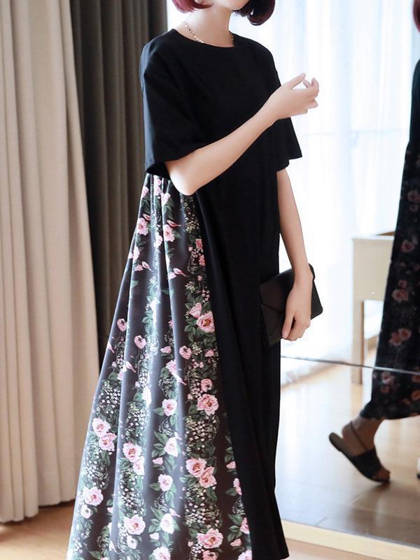 Original Floral Round-Neck Dress