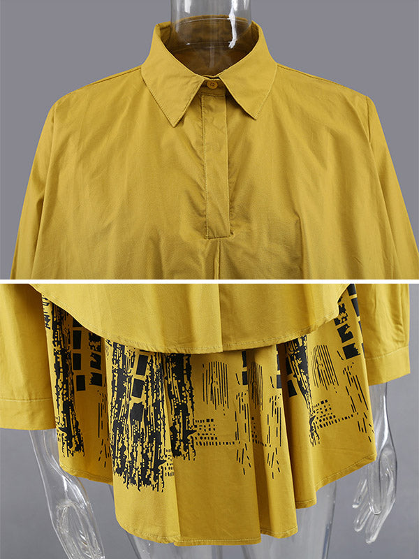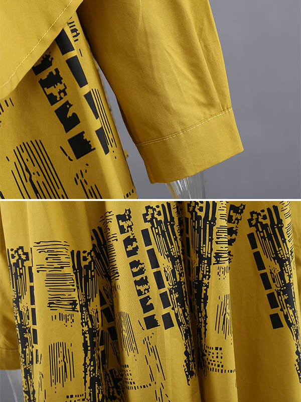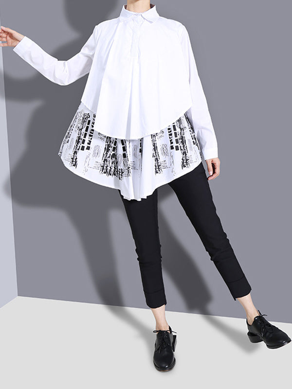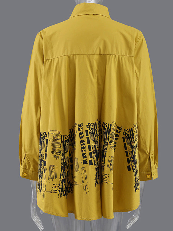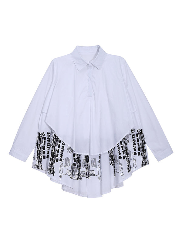 Original Irregular Printed Split-Joint Lapel Collar Long Sleeves Shirt