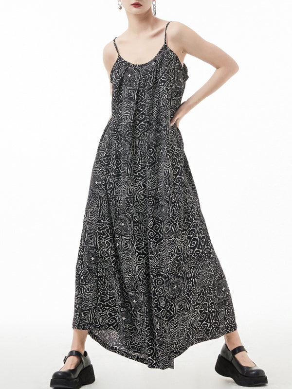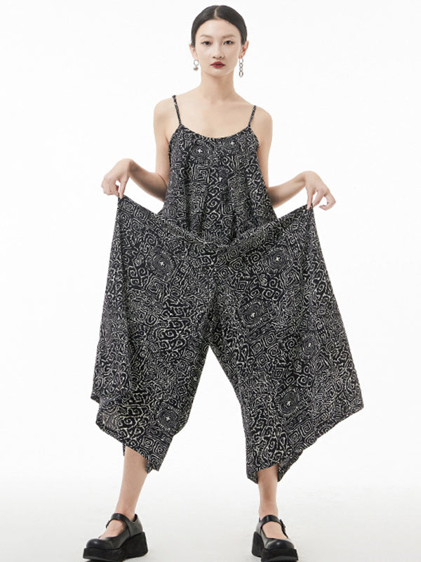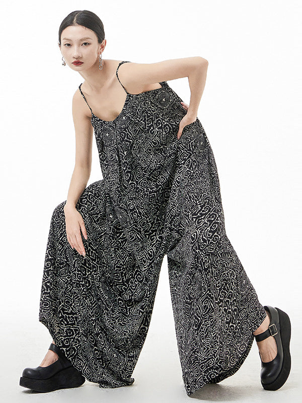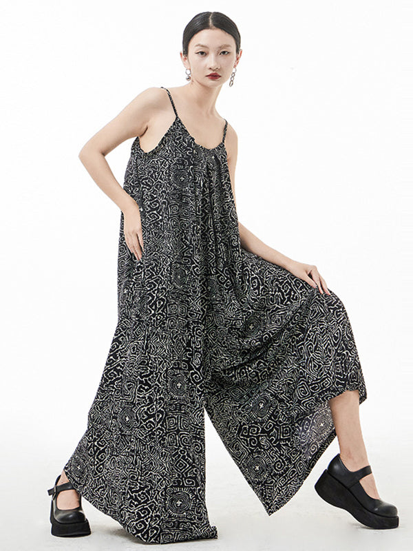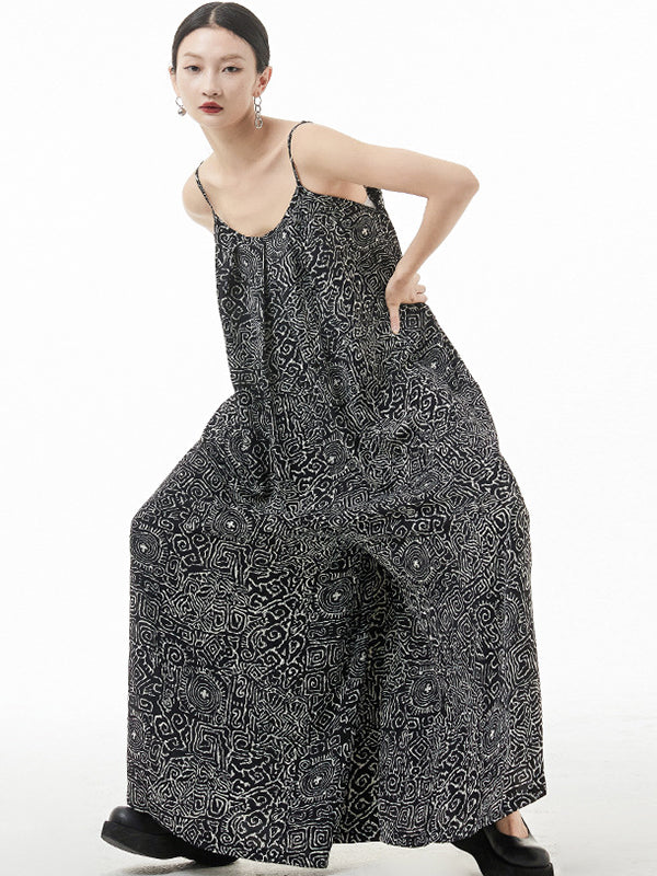Original Loose Black Printed Spaghetti-Neck Wide Leg Jumpsuits