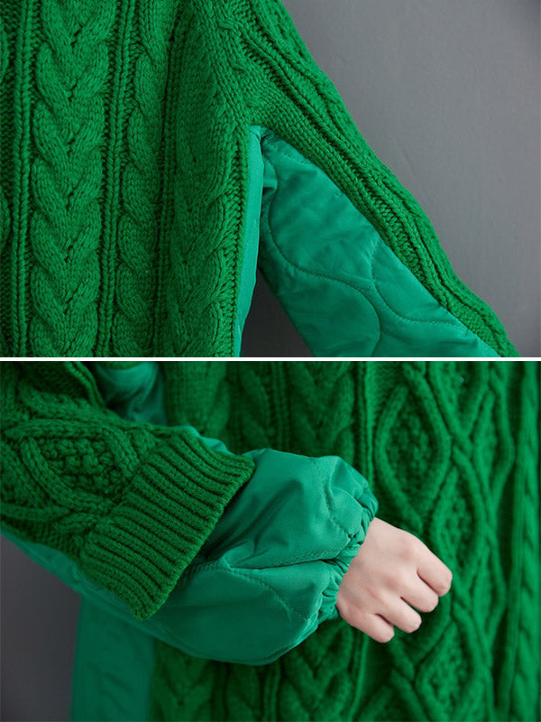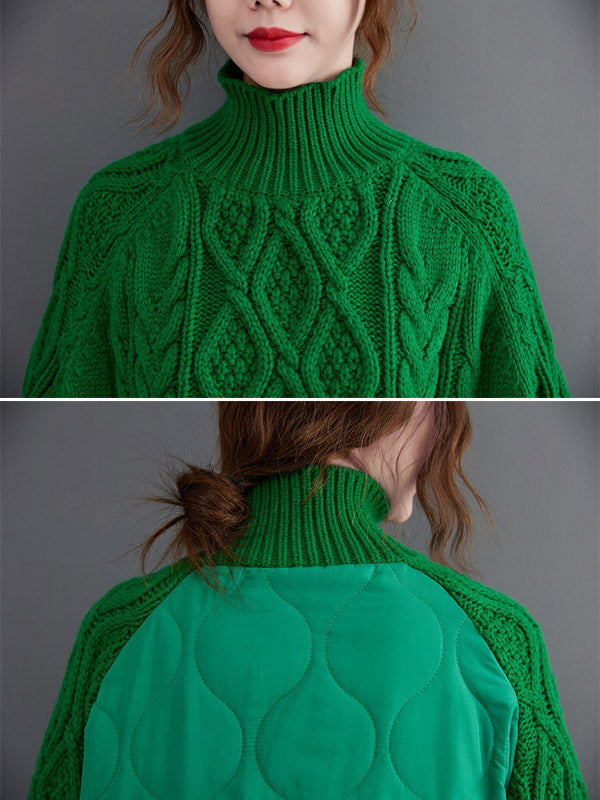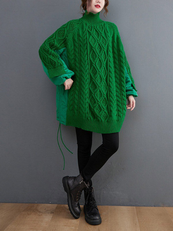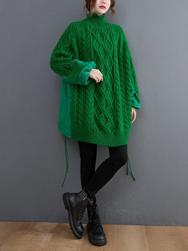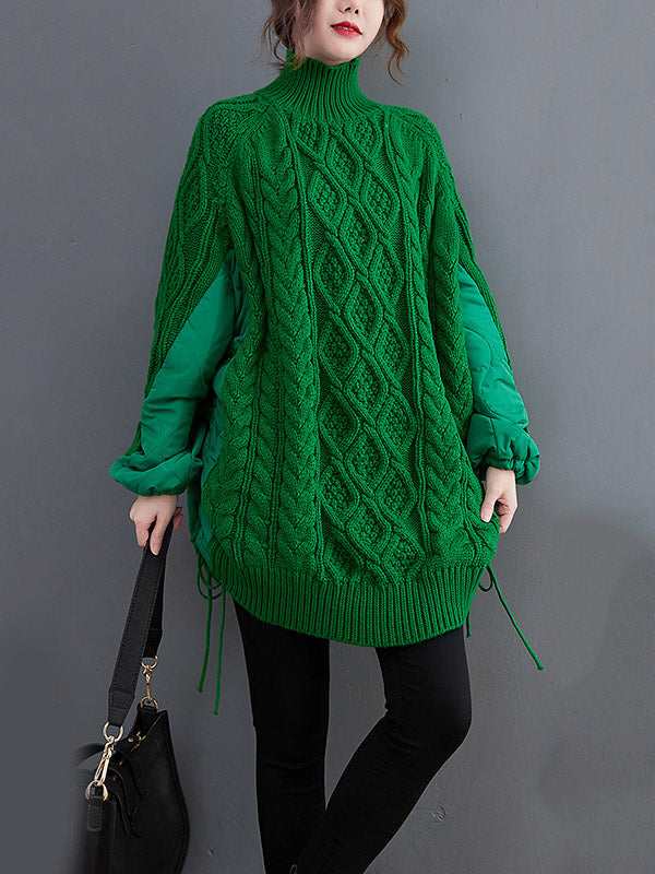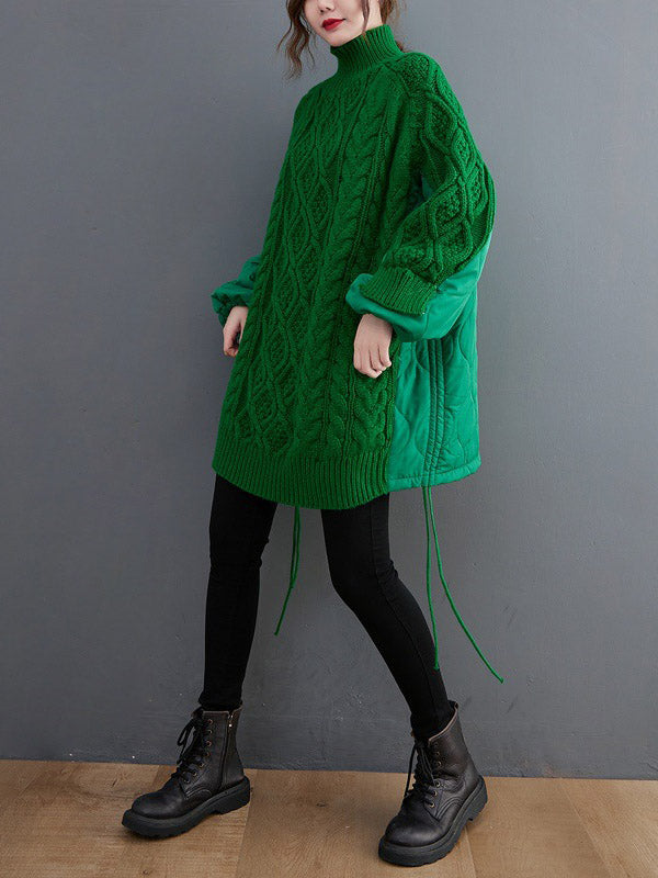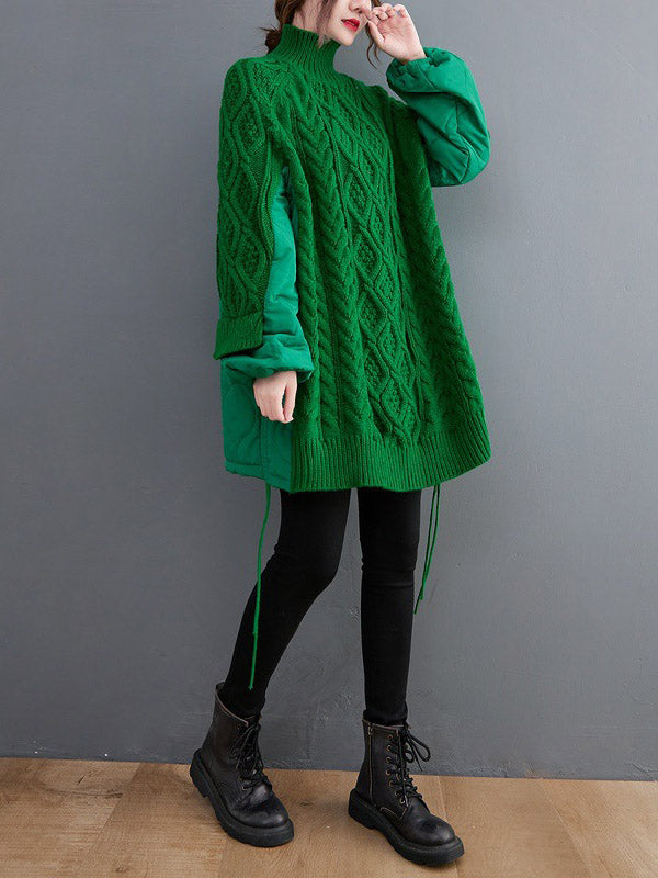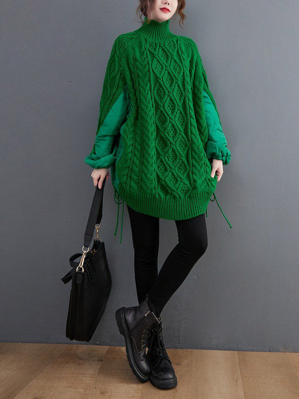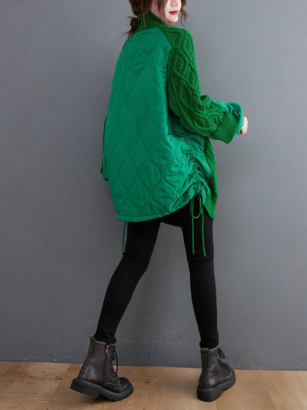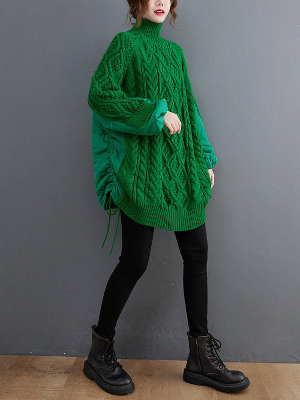 Original Loose Drawstring Split-Joint High-Neck Long Sleeves Padded Sweater Top