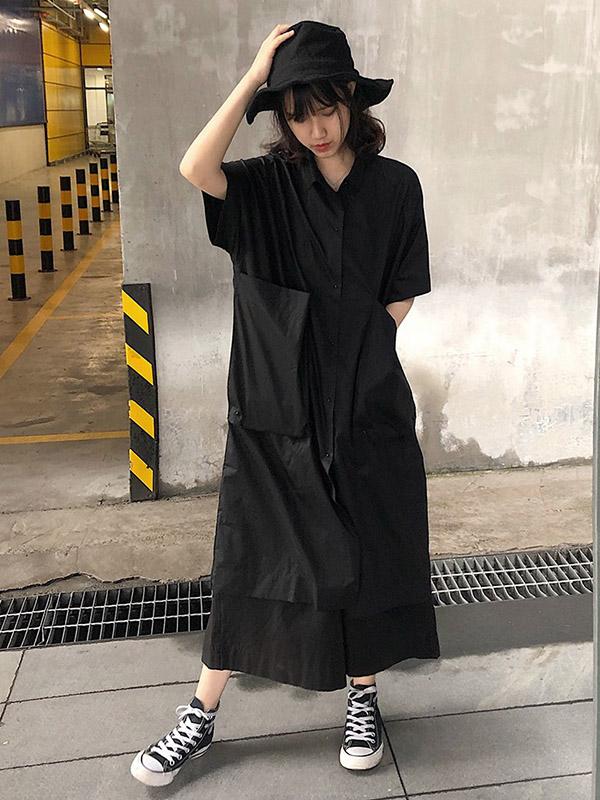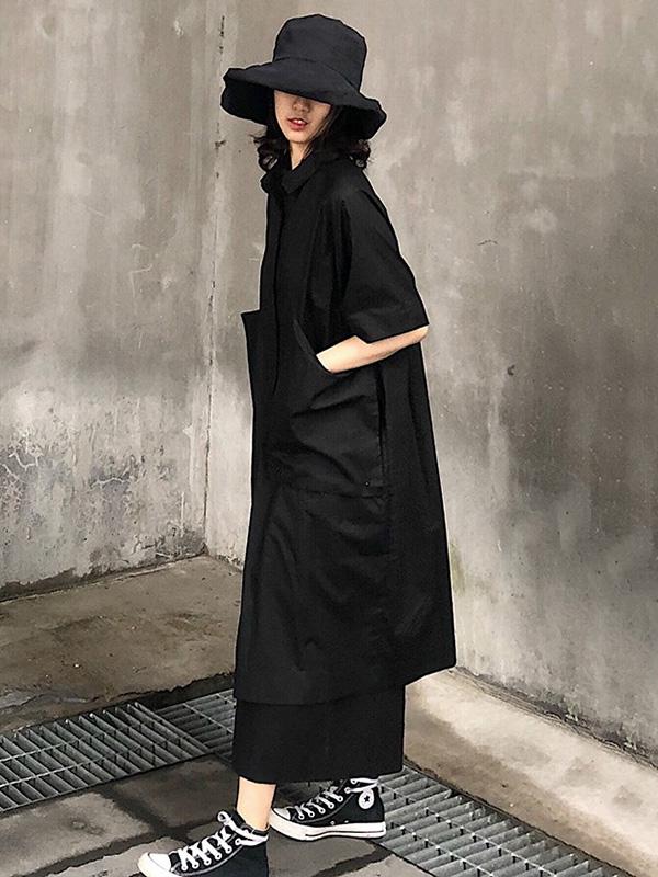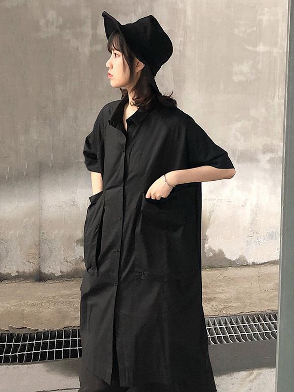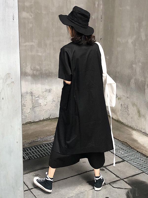 Original Loose Oversize Solid Black Blouse Dress
