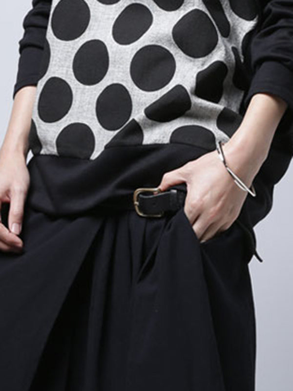 Original Loose Polka-Dot Split-Joint Heaps Collar Long Sleeves T-Shirt Tops