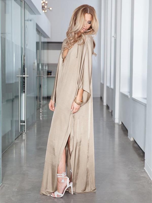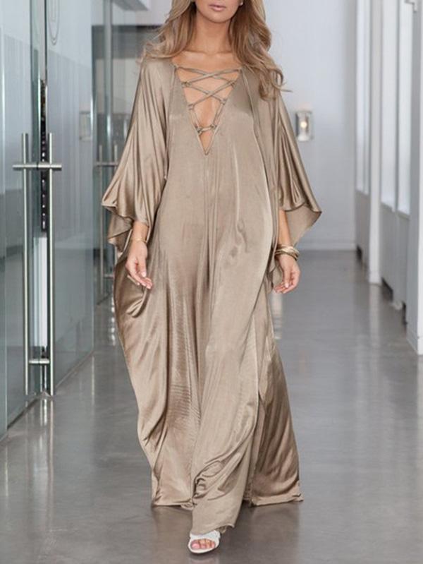 Original Loose Solid V-neck bandage Sun-protection Dress