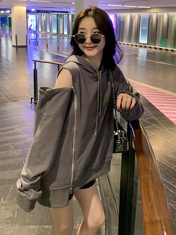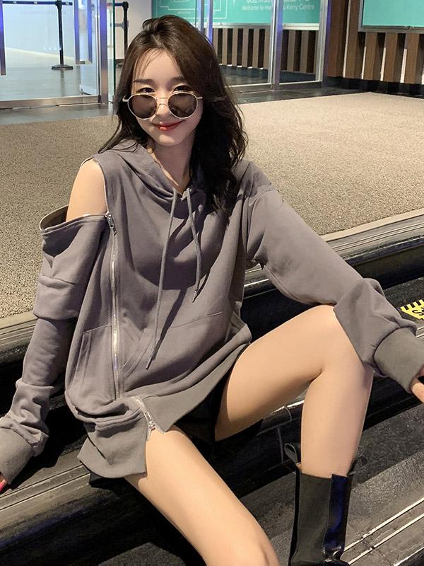 Original Off-The-Shoulder Irregularity Hoodies