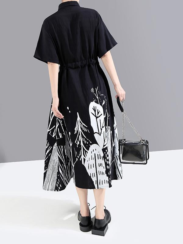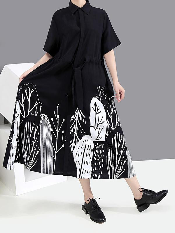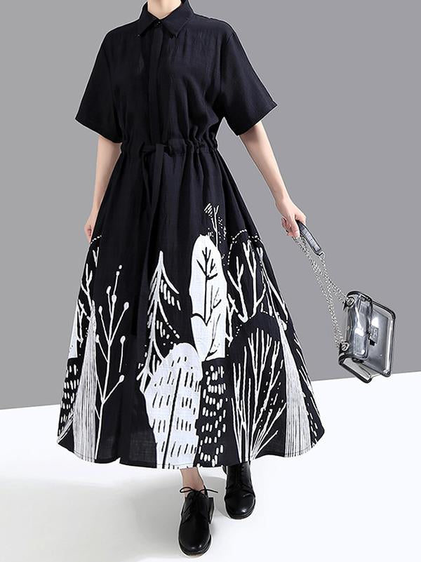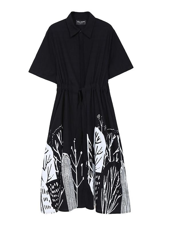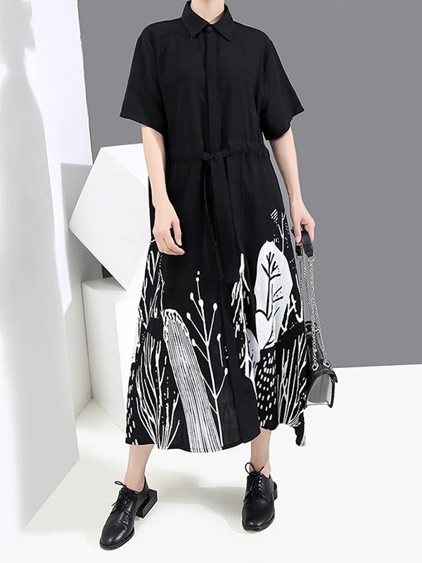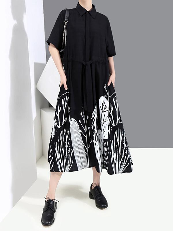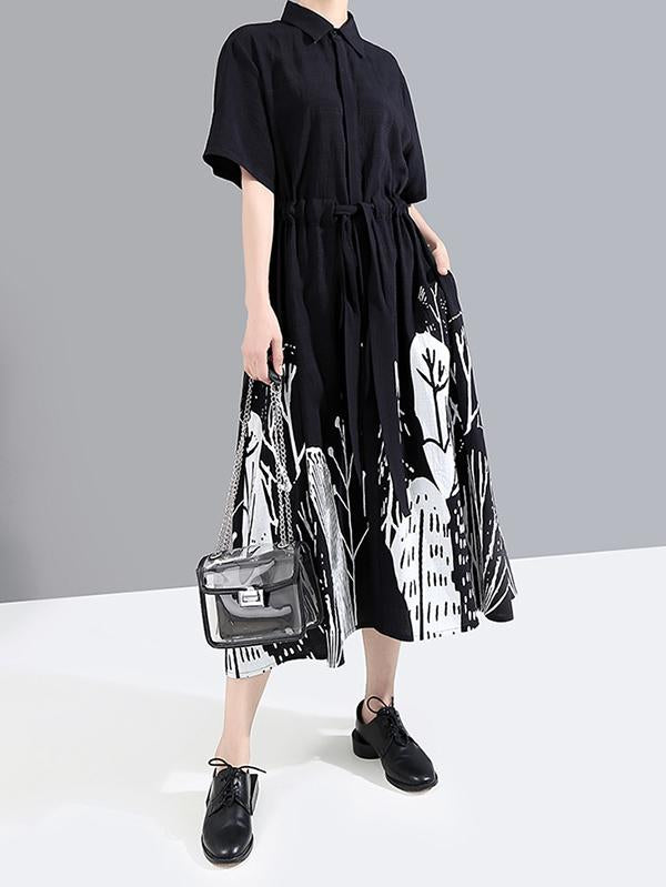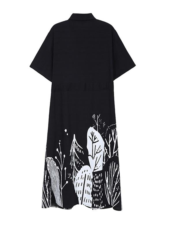 Original Print Lapel Shirt Dress