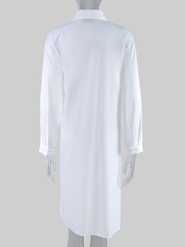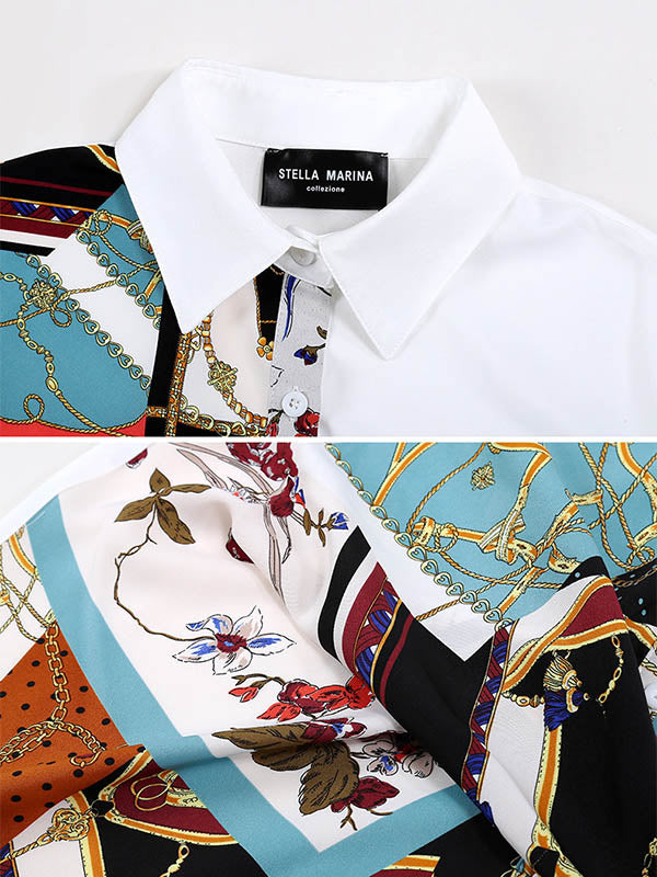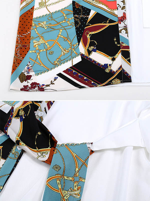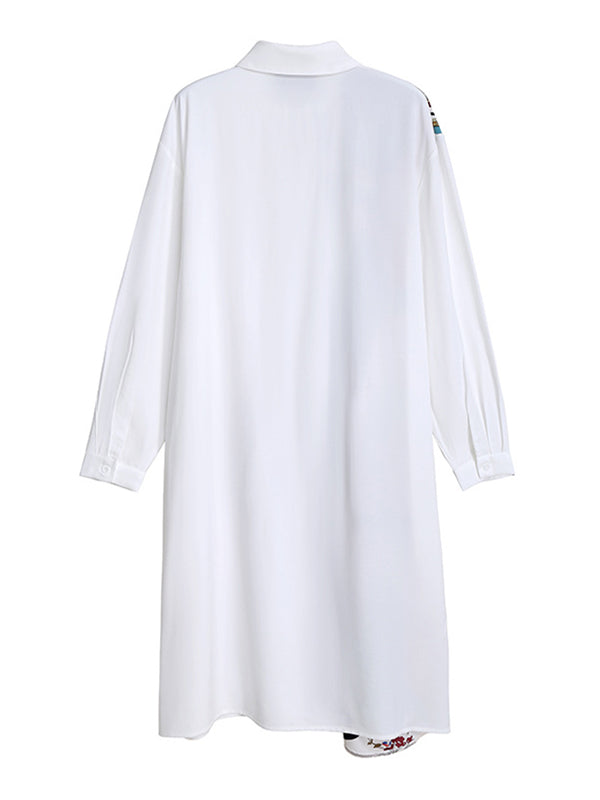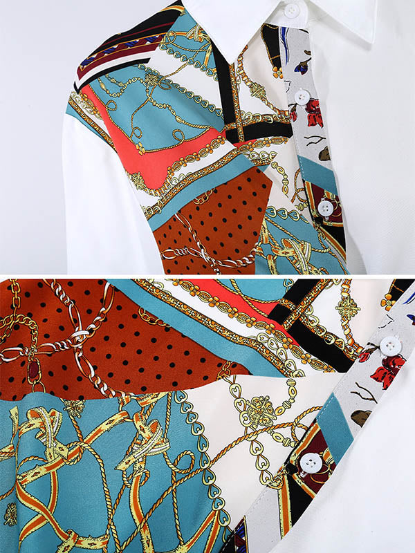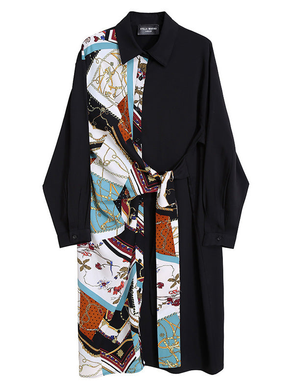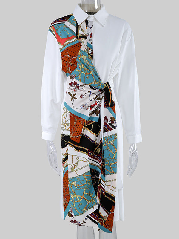 Original Printing Split-Joint Long Sleeve Shirt Dress