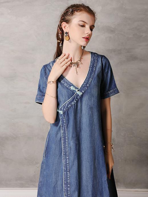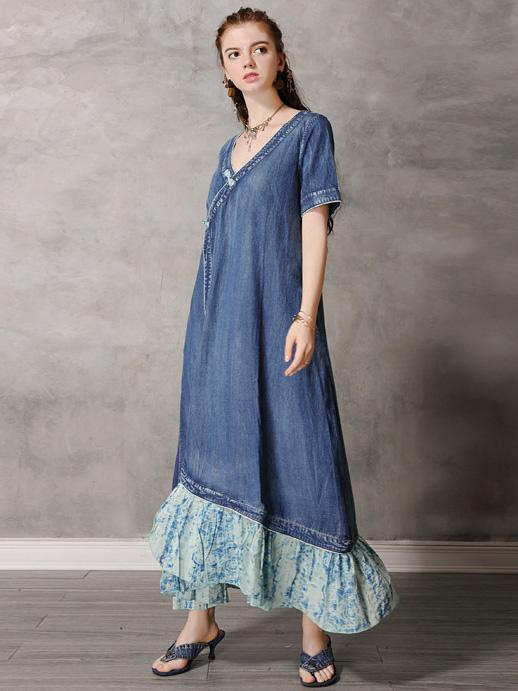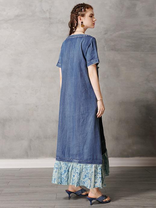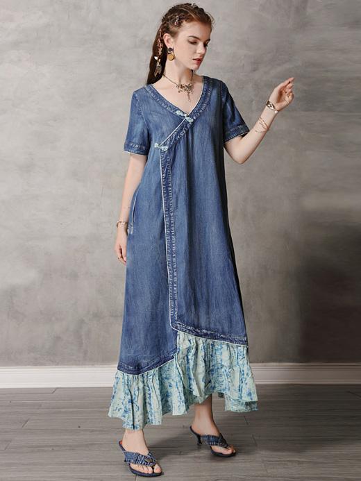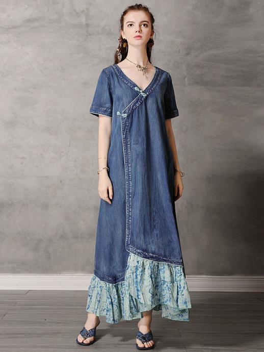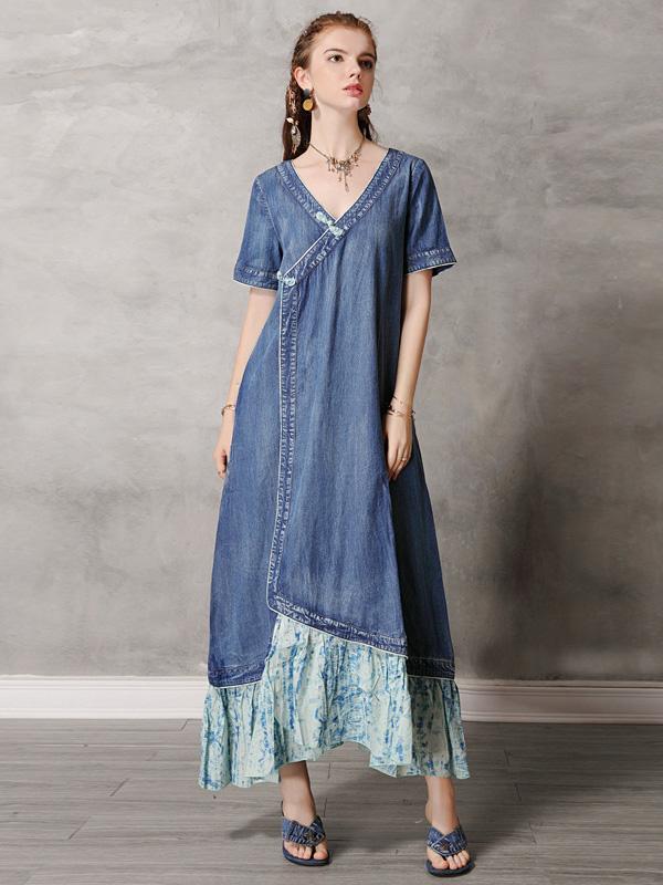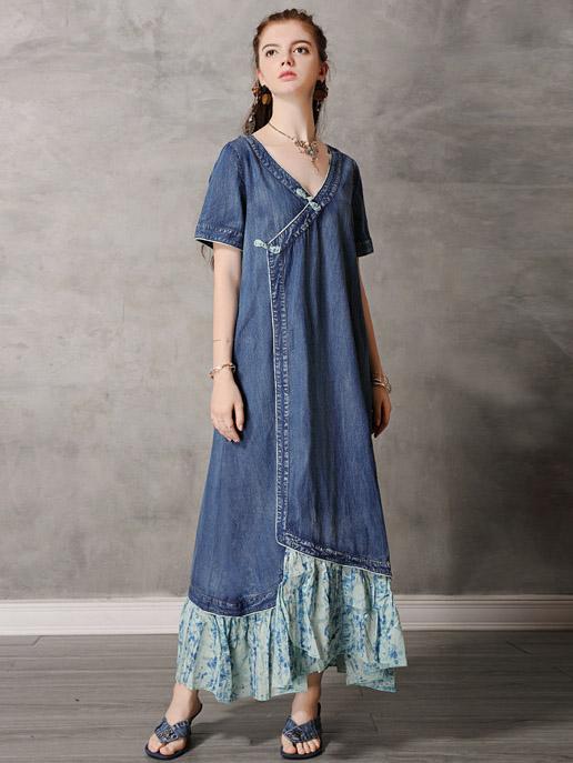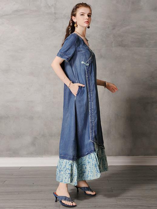 Original Retro Split-joint Cropped Frog Long Dress