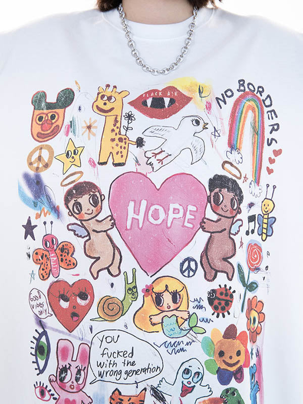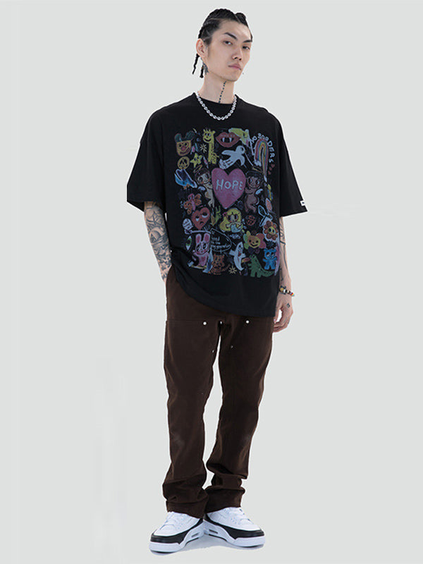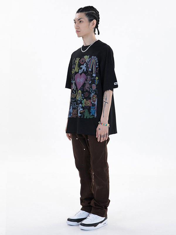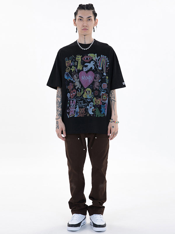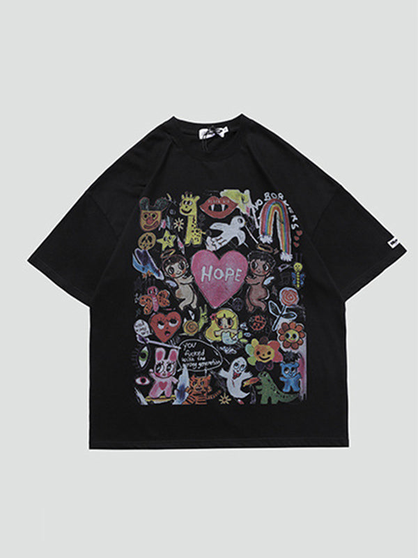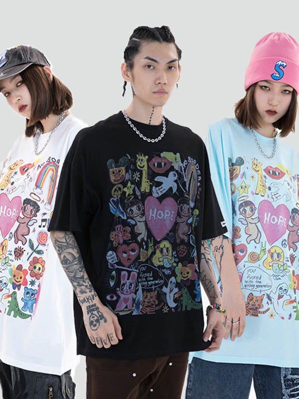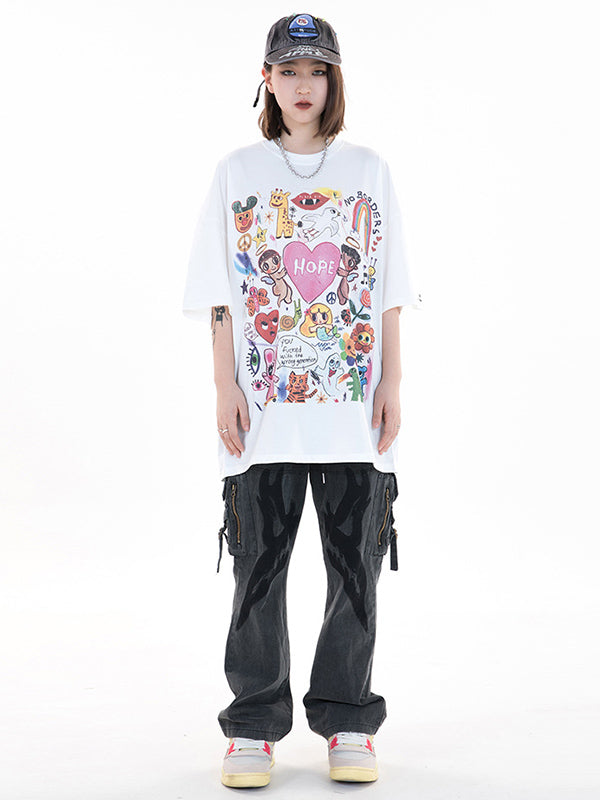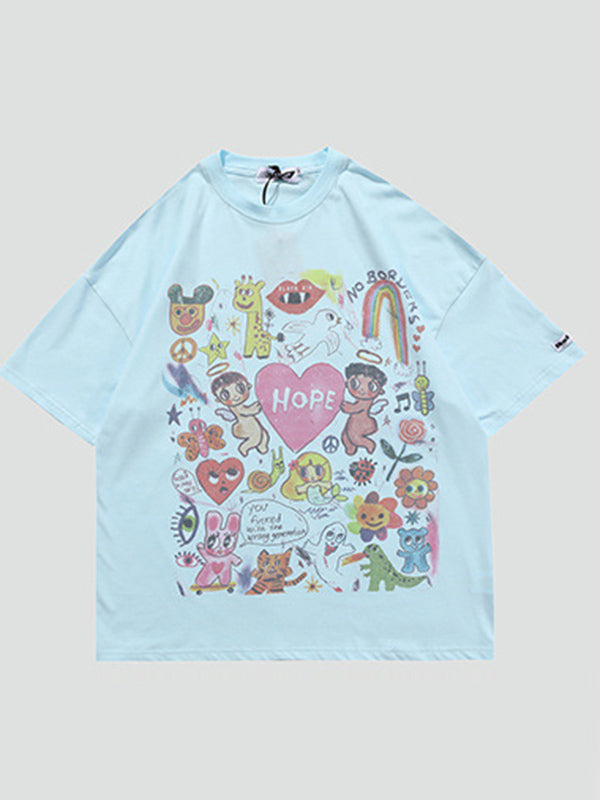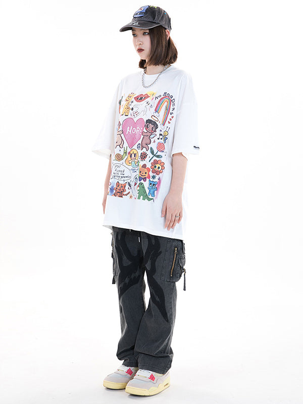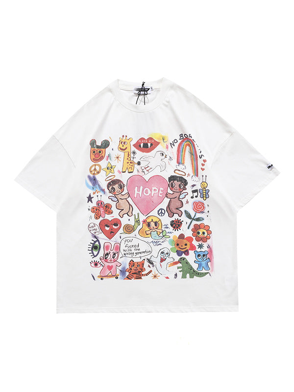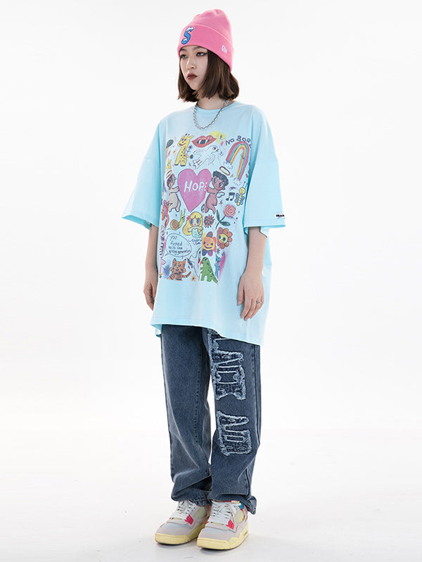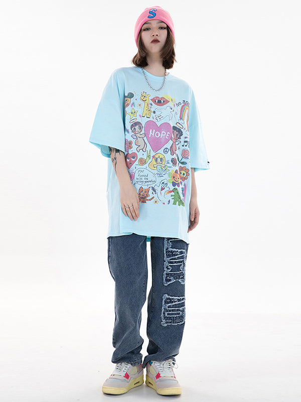 Original Round-Neck Cartoon Printed Loose T-Shirts Tops