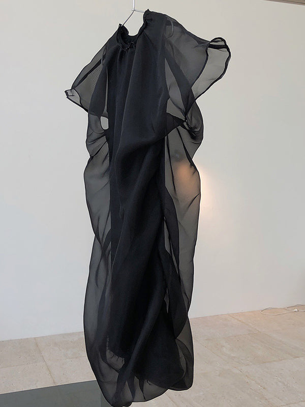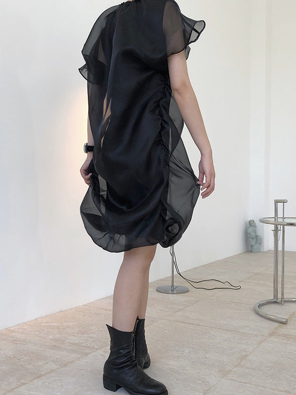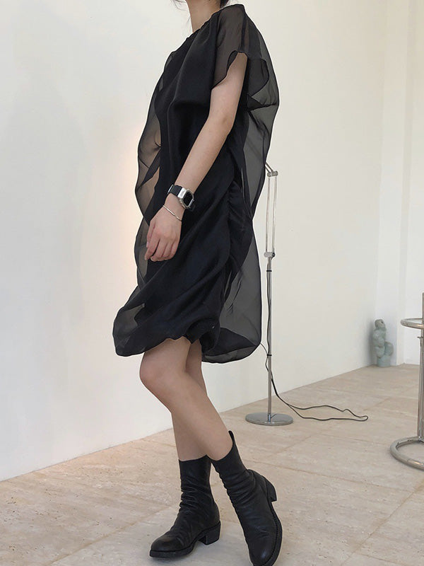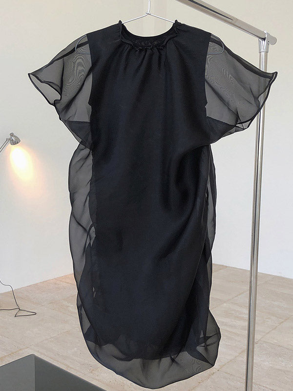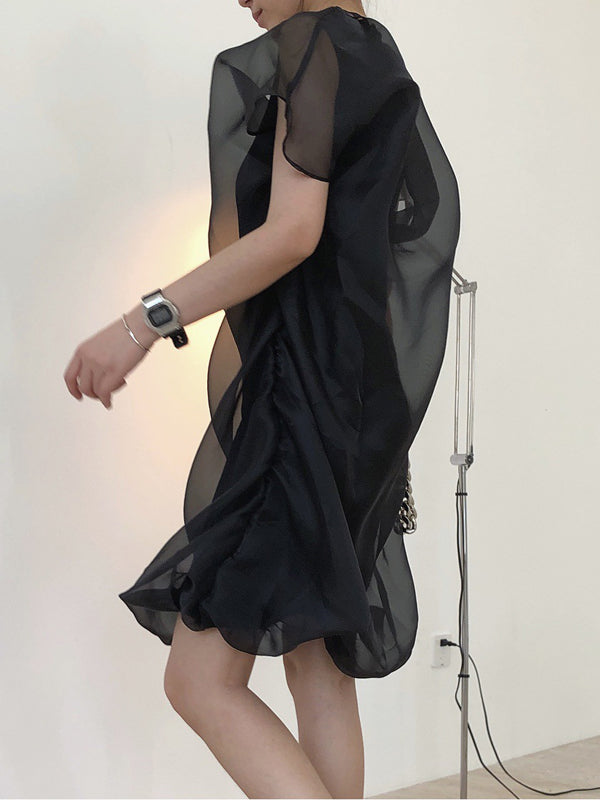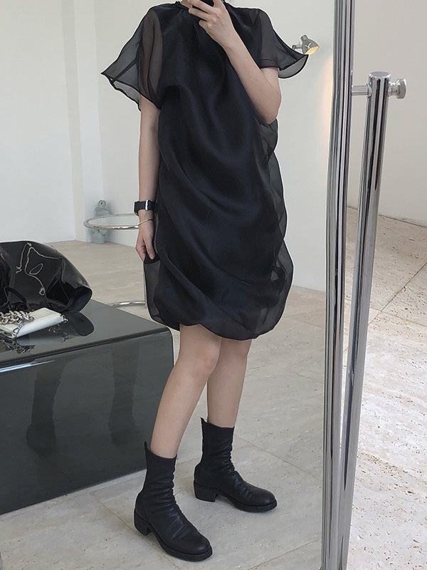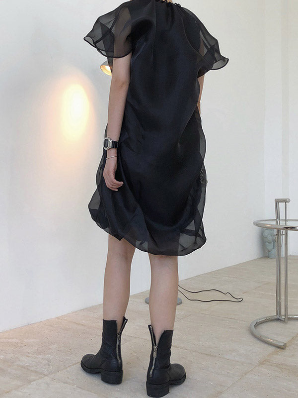 Original See-Through Bishop Sleeve Round-Neck Mini Dress