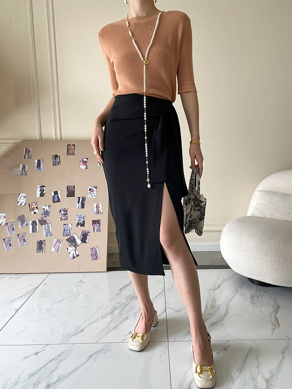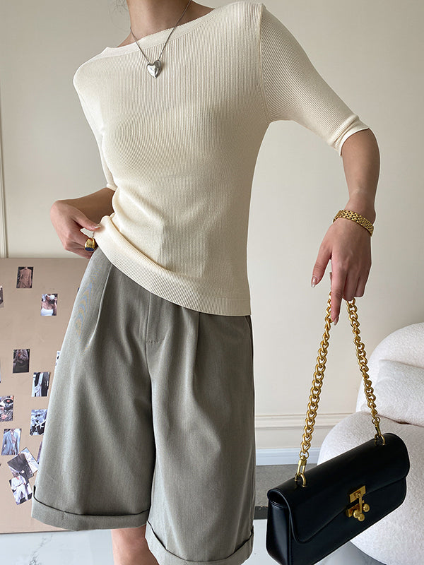 Original Simple Casual Solid Color Skinny Knitting T-Shirt Top