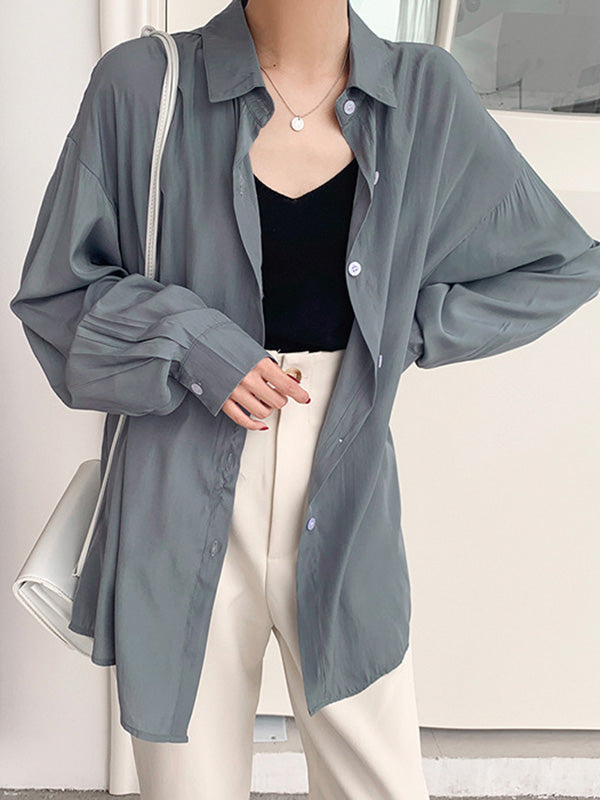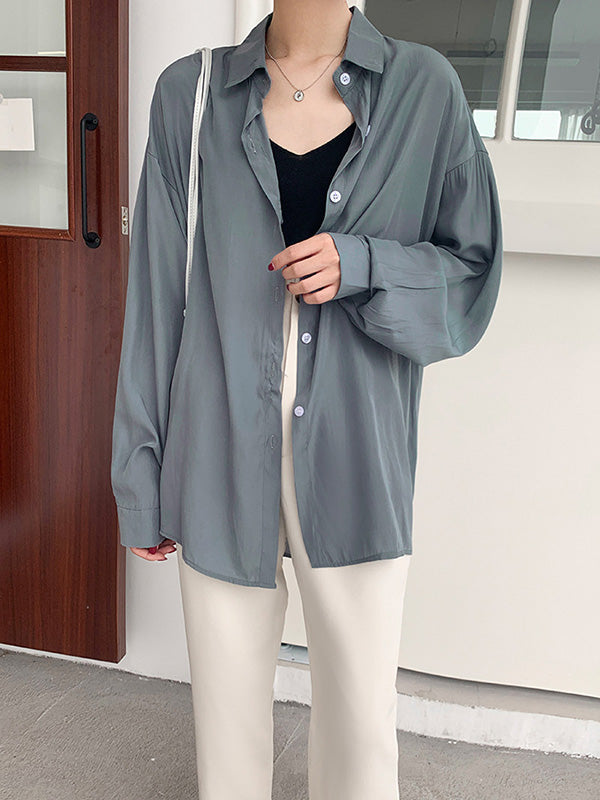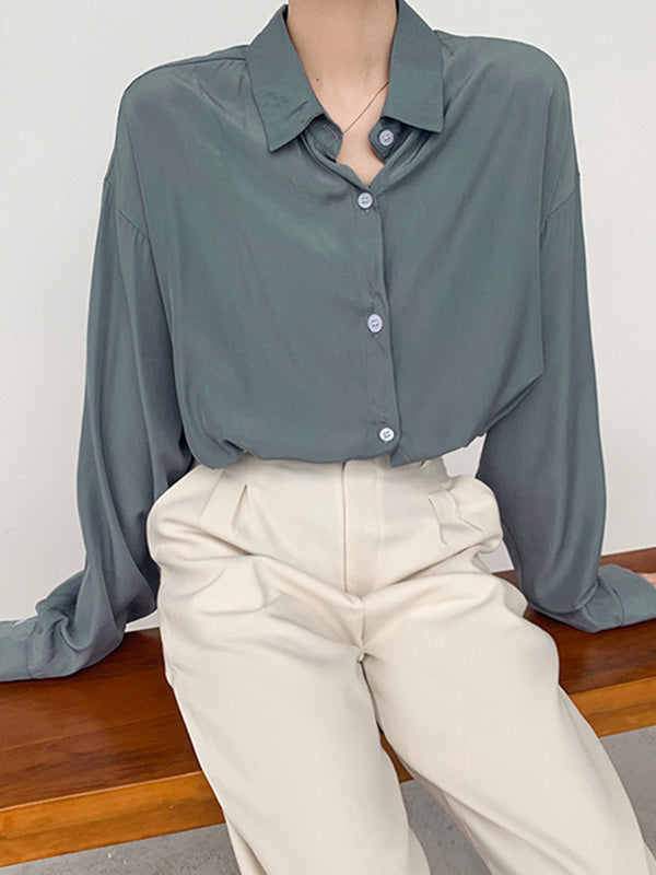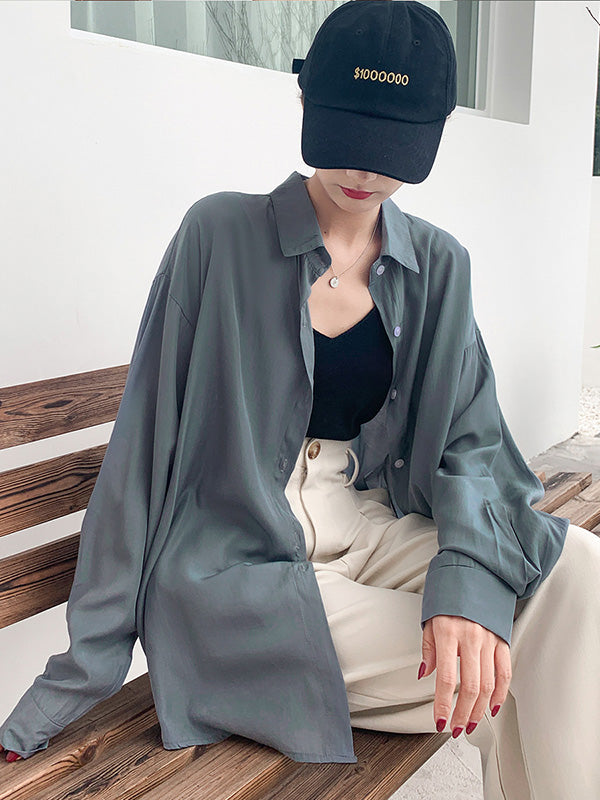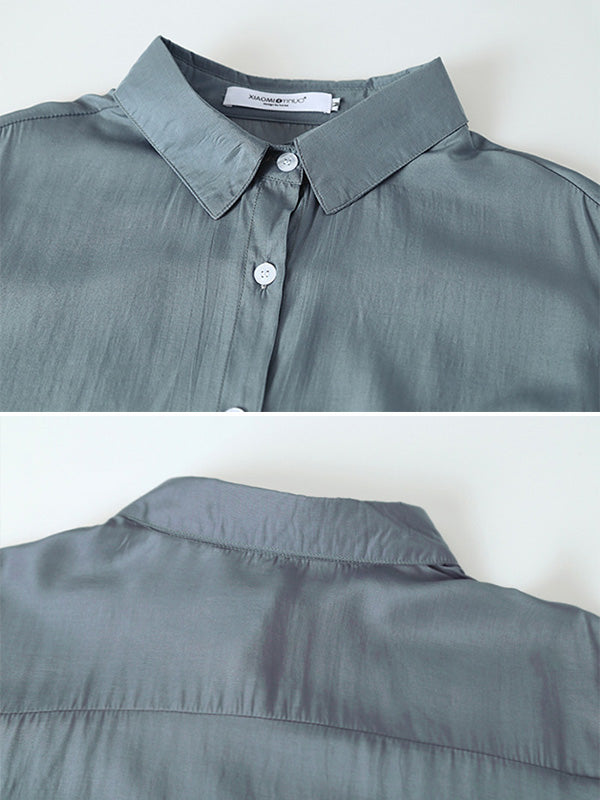 Original Solid Color Thin Lapel Blouses&Shirts Tops