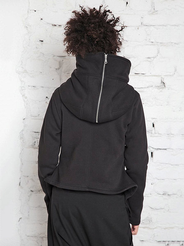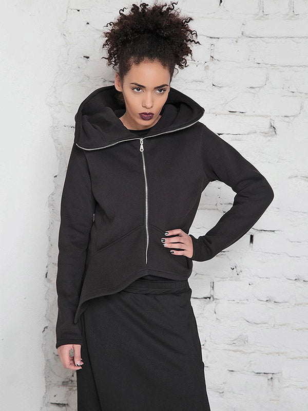 Original Solid Color Zipper High-Neck Hooded Long Sleeves Outwear