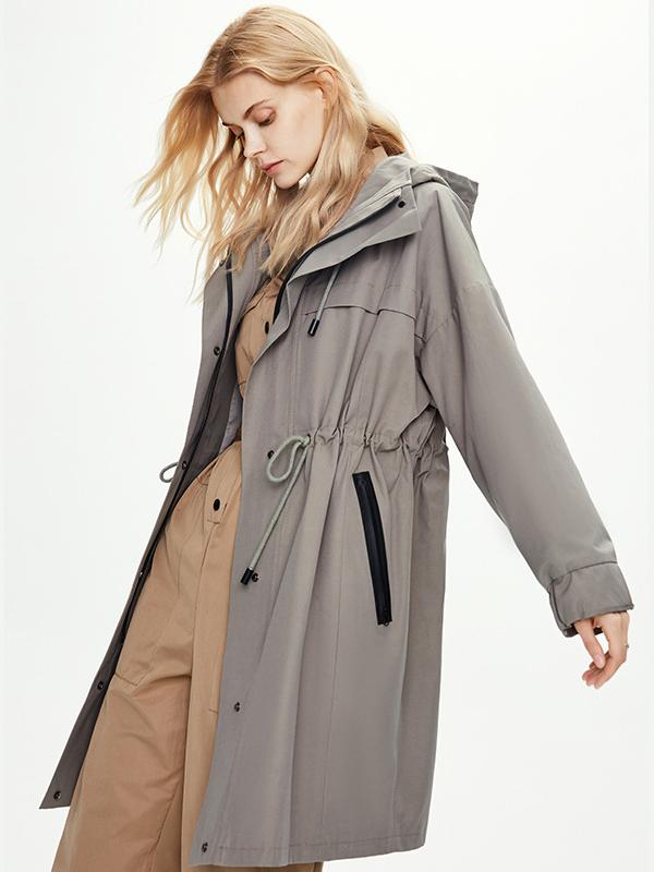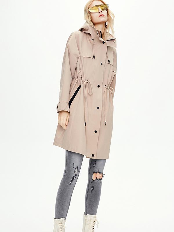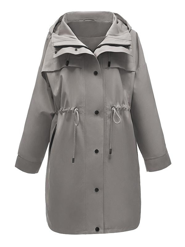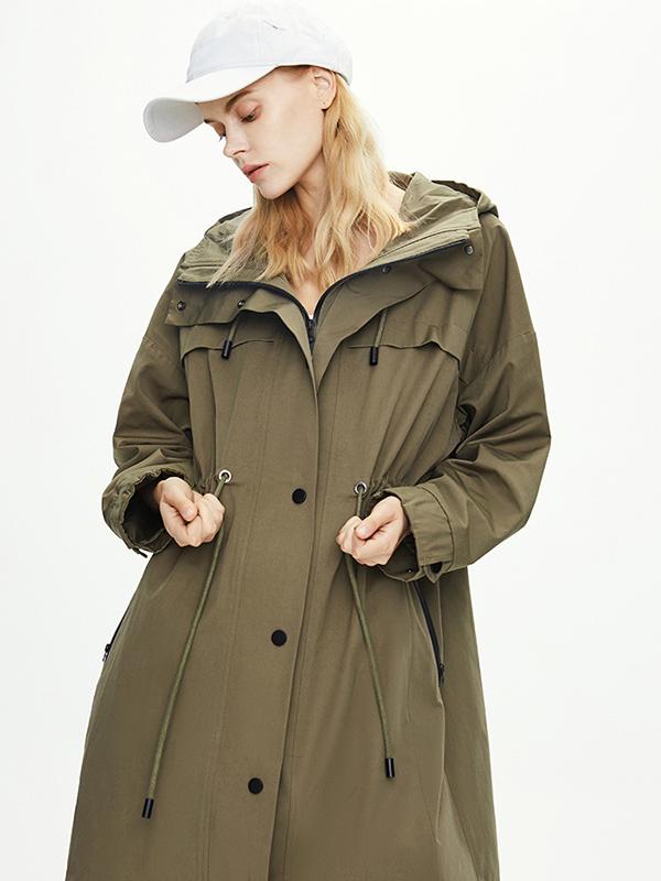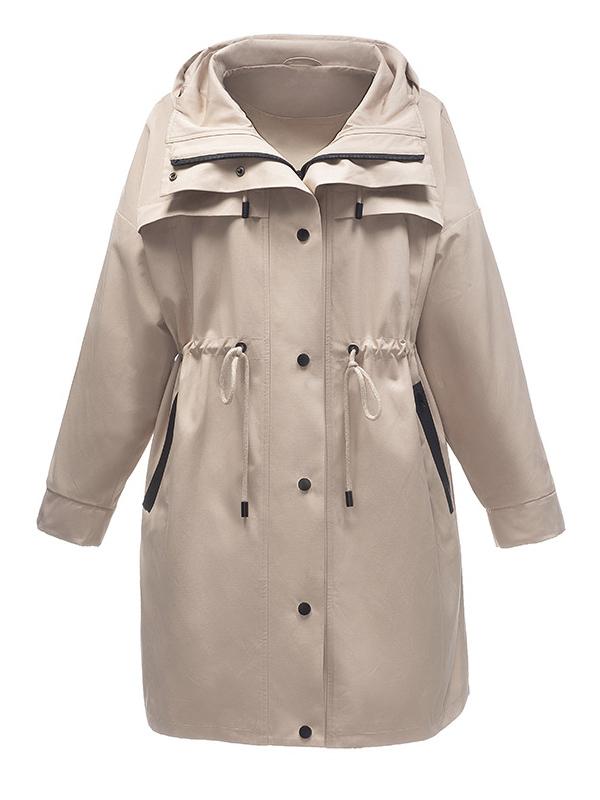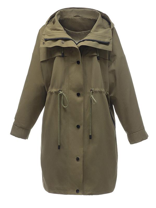 Original Solid Hooded Drawstring Trench Coats&Wind-Breaker