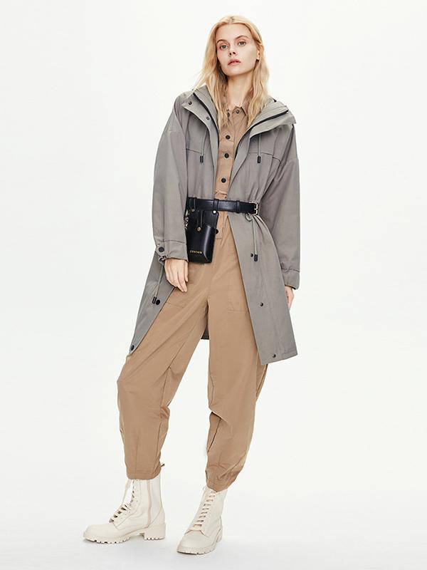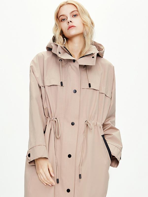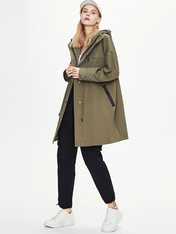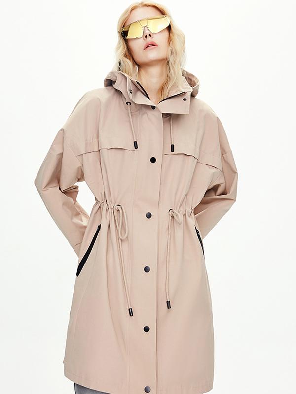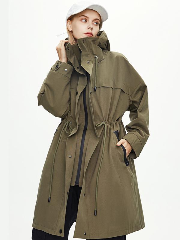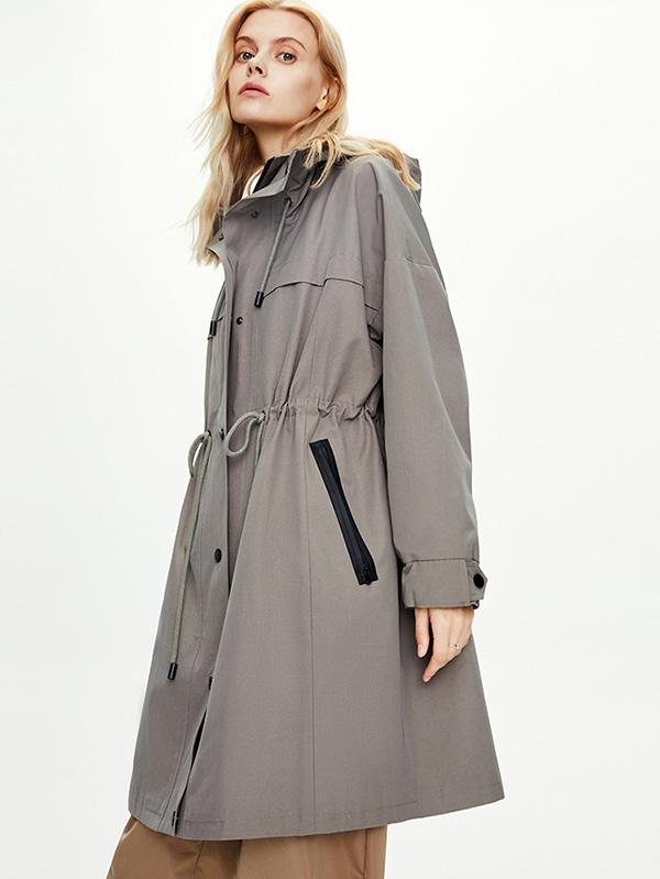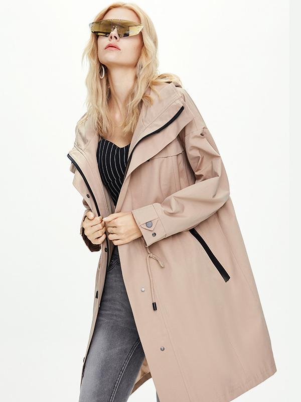 Original Solid Hooded Drawstring Trench Coats&Wind-Breaker