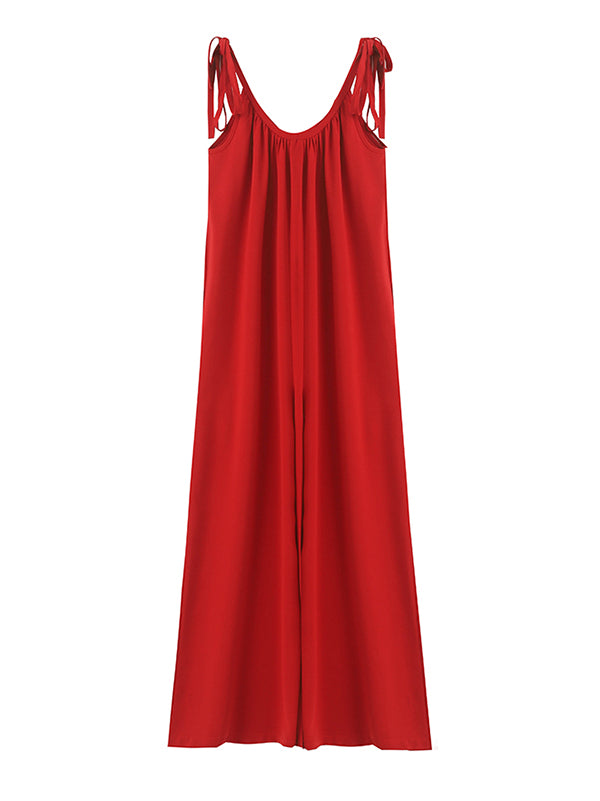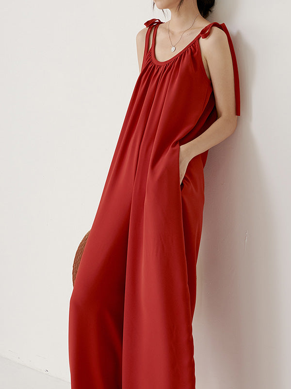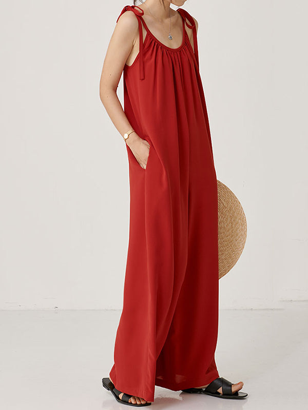 Original Solid Pleats Cropped Suspender Jumpsuits