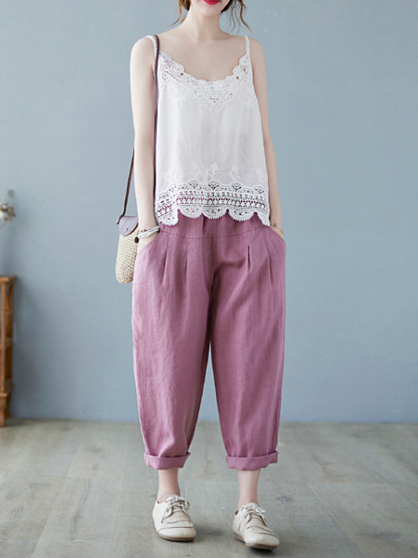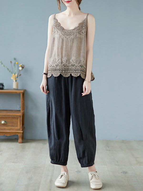 Original Solid Sleeveless Lace&Hollow V-Neck Vest