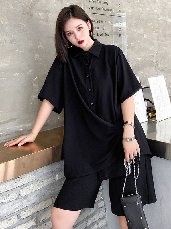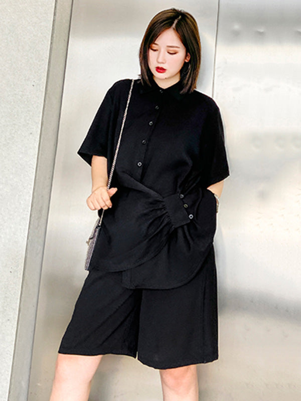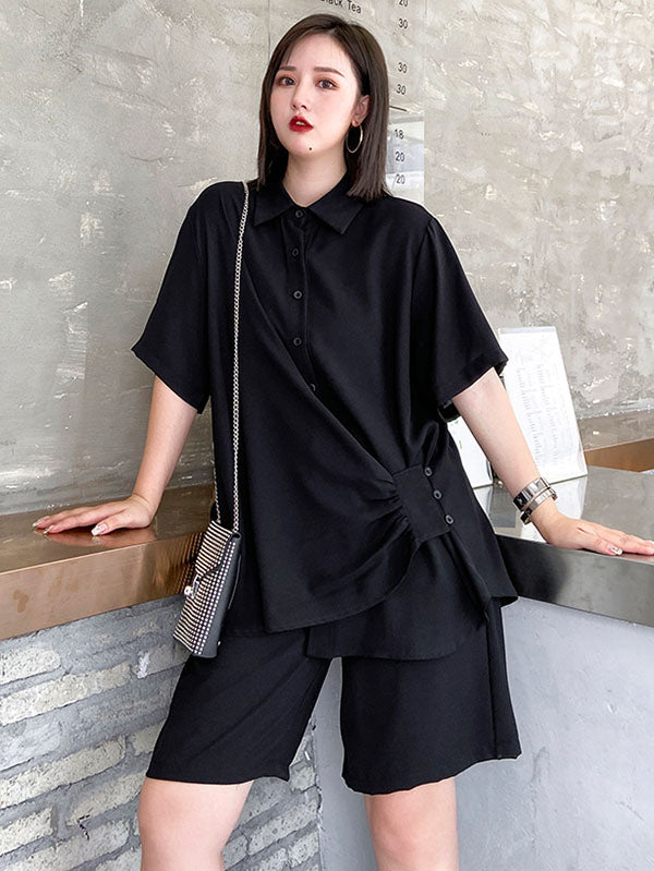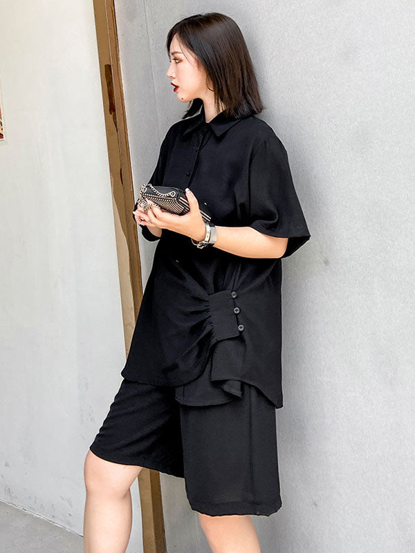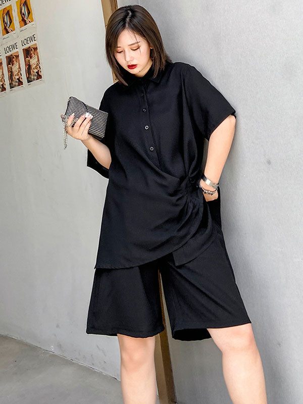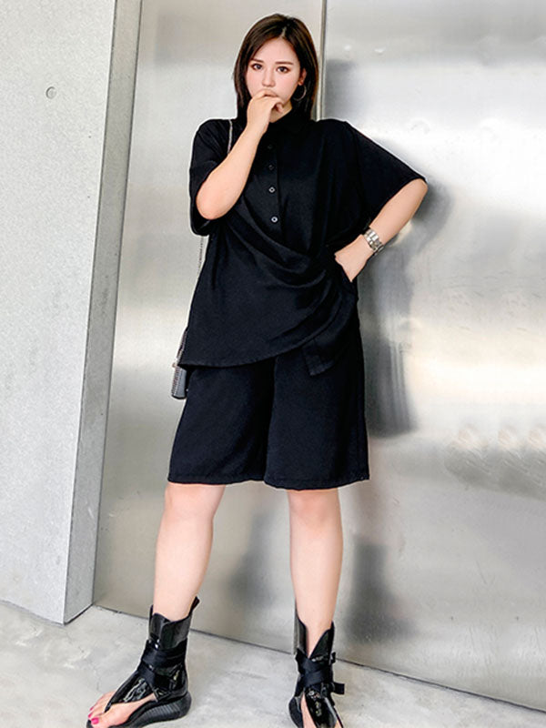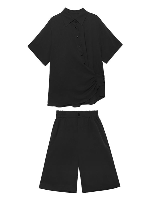 Original Solid T-Shirt&Wide Leg Shorts Suit