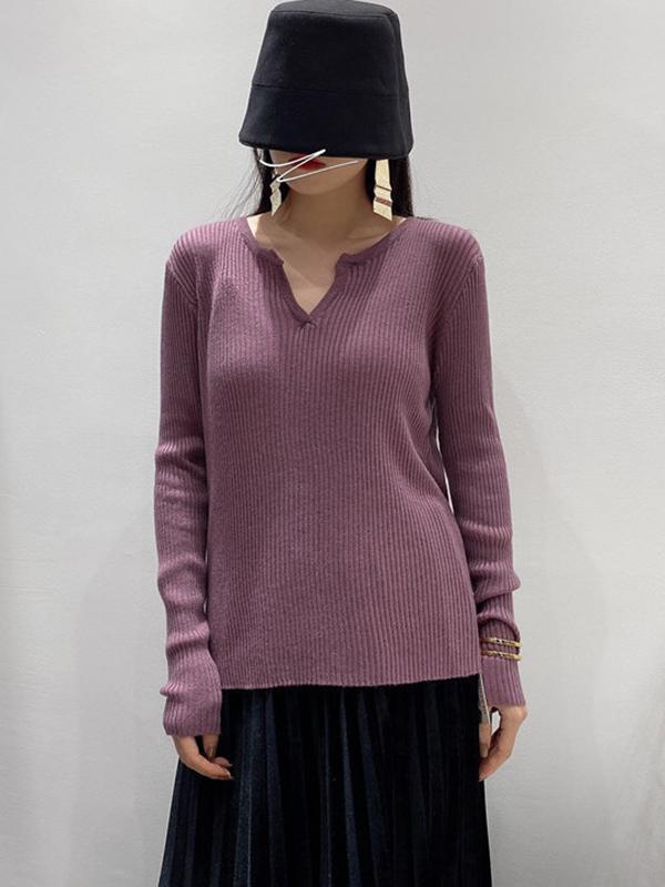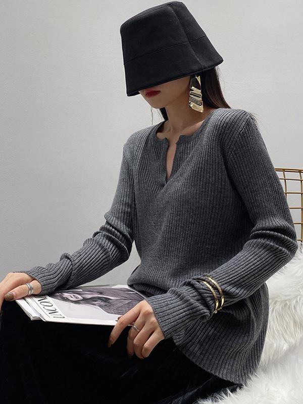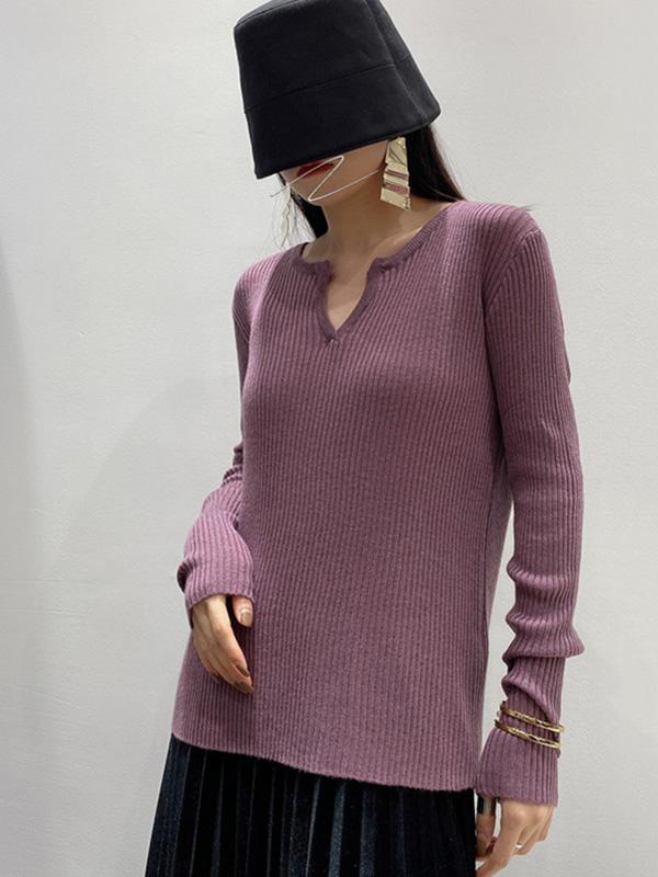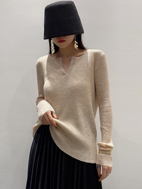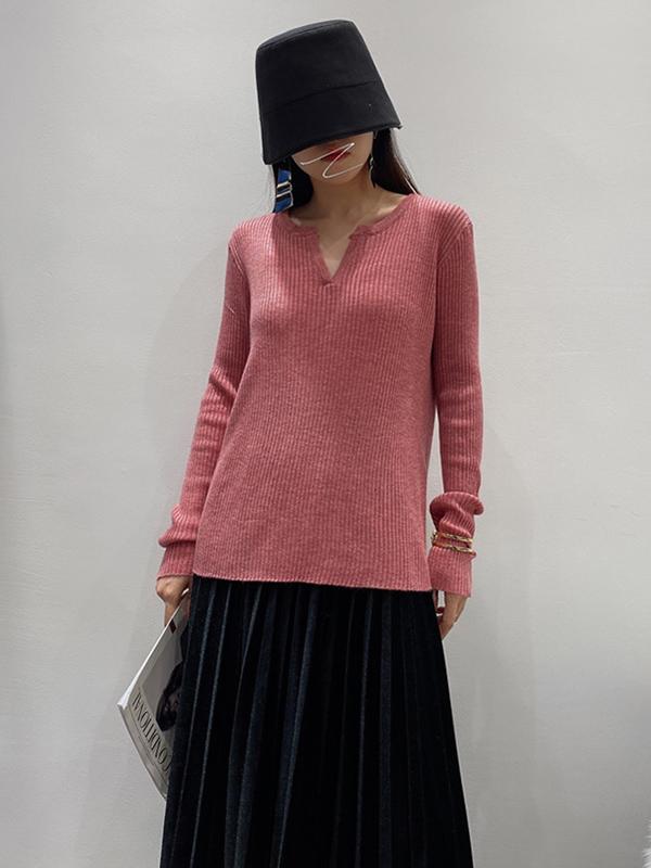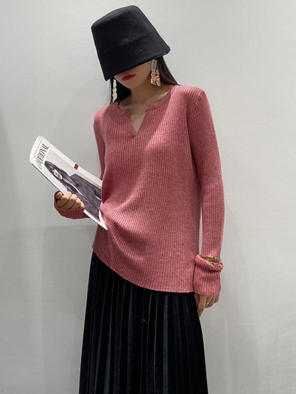 Original Solid V-Neck Knitting Sweater