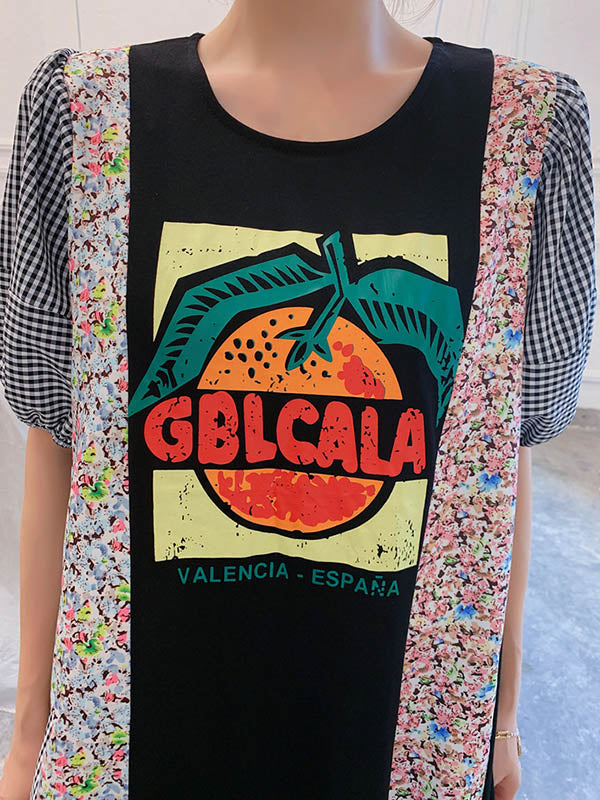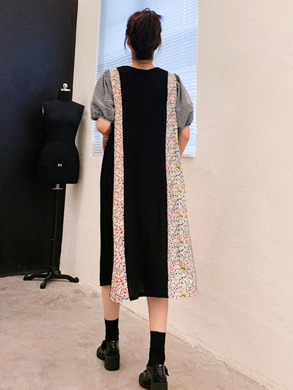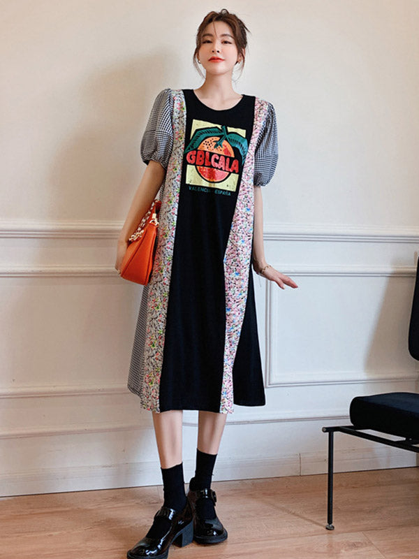 Original Split-Joint Letter Print Puff Sleeve Midi Dress