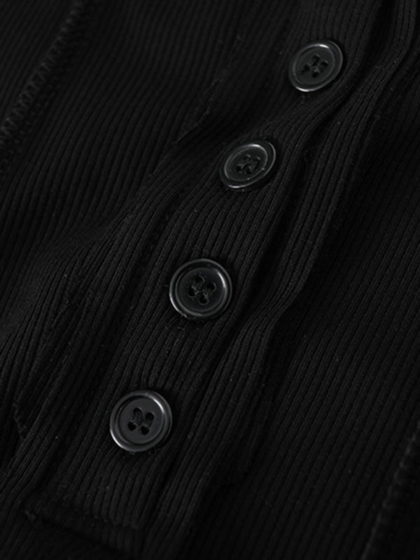 Original Stylish Solid Color Buttoned Skinny T-Shirt Top