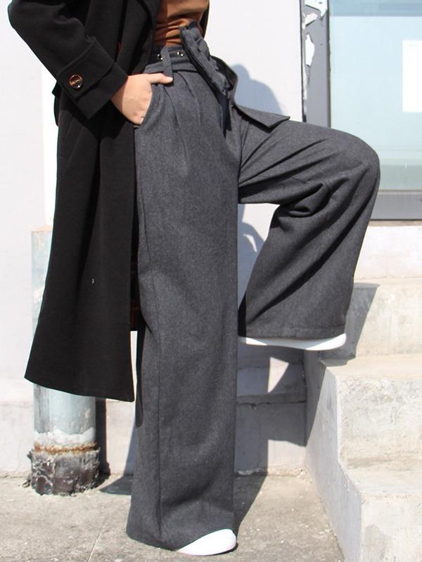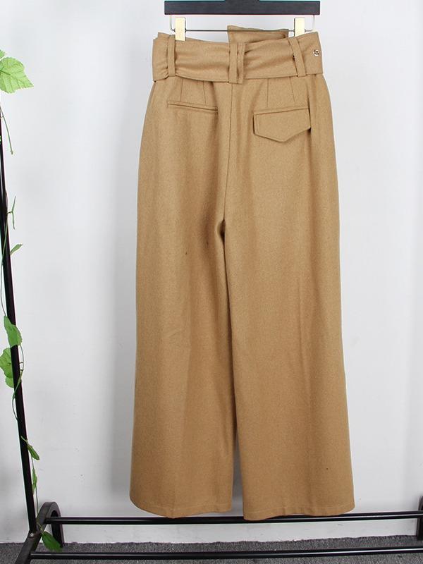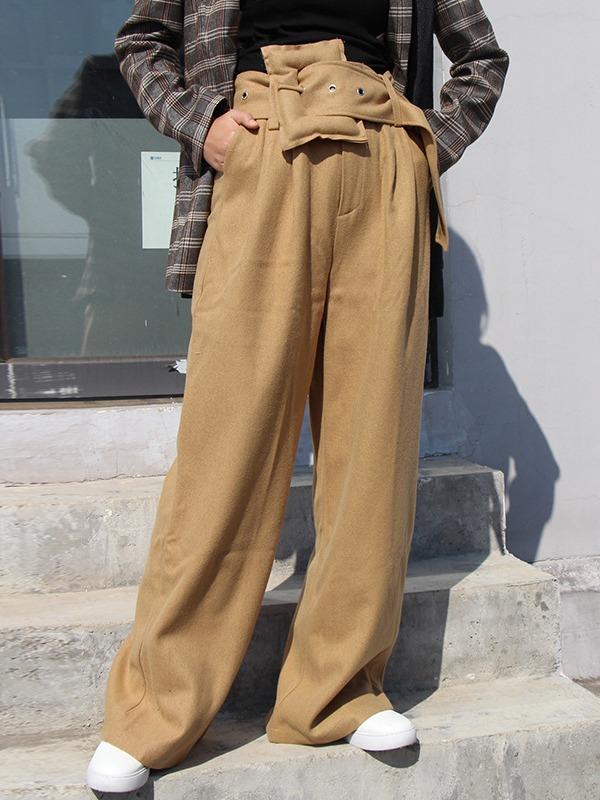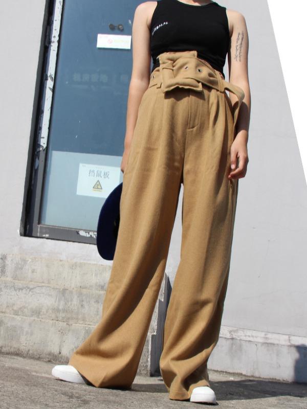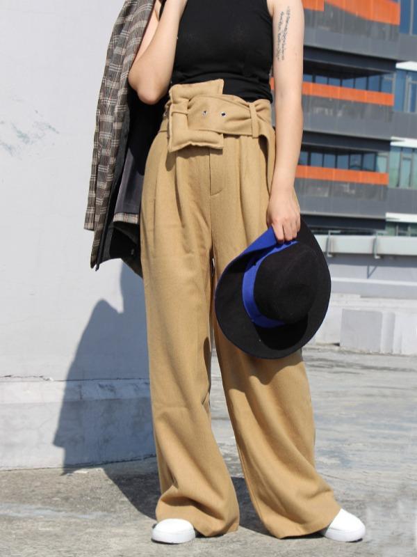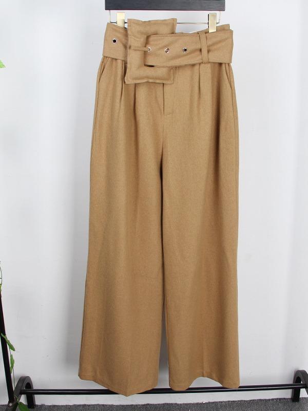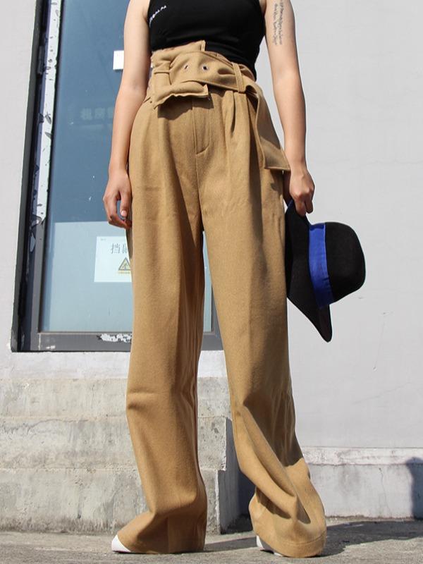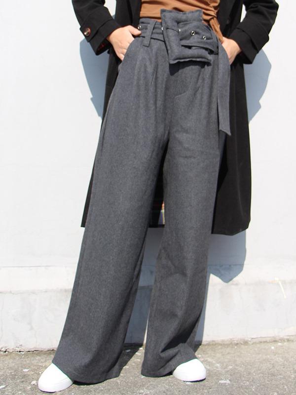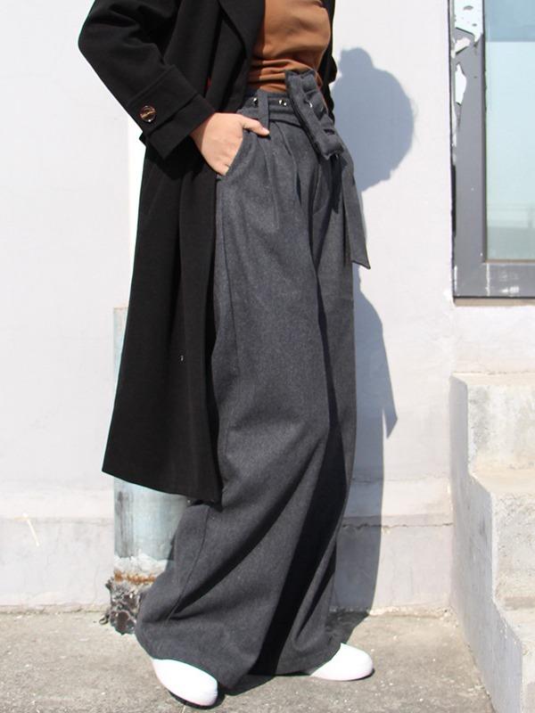 PERSONALITY BELT EMPIRE WOOLEN WIDE LEG PANTS