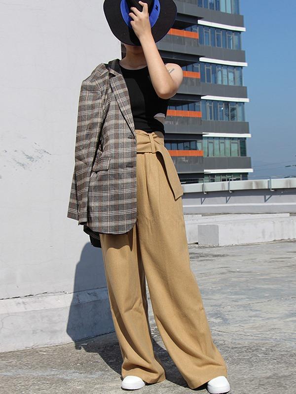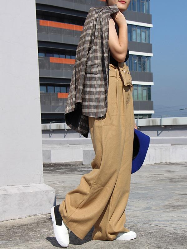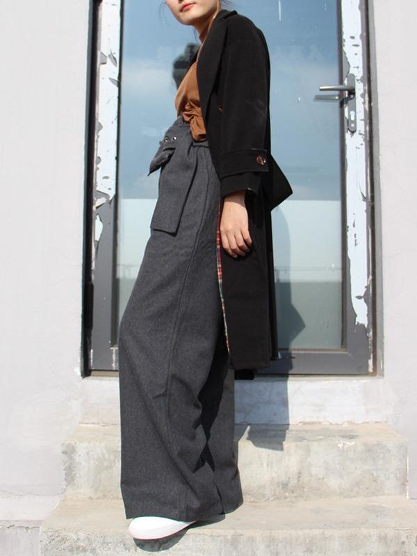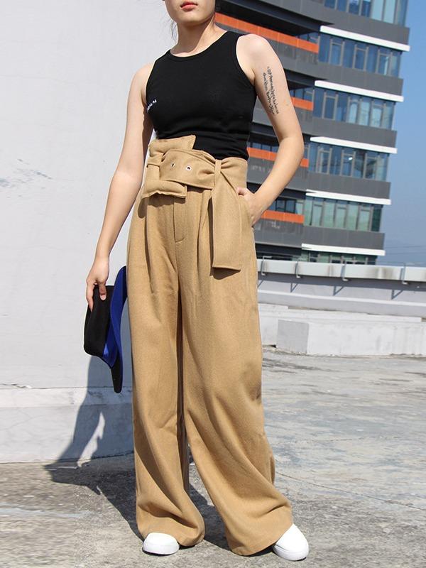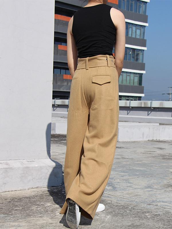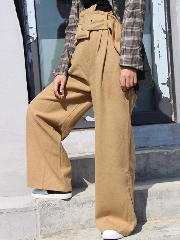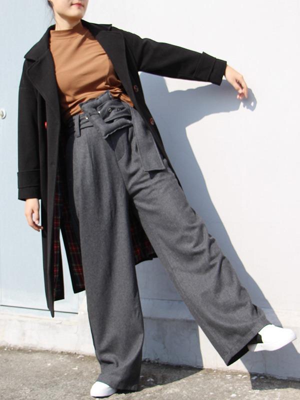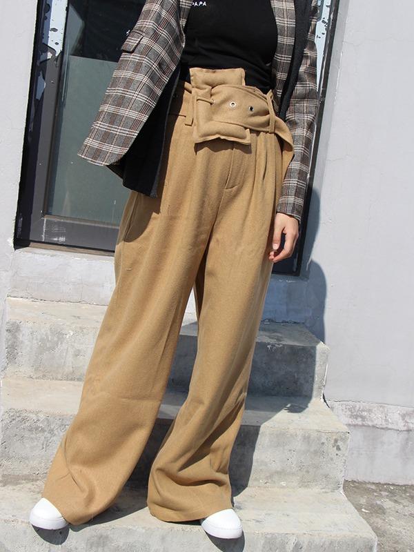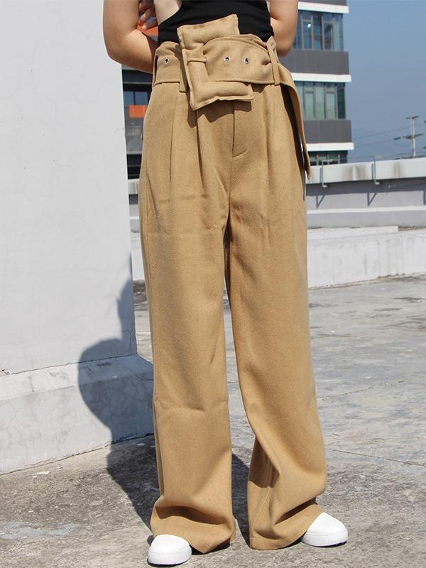 PERSONALITY BELT EMPIRE WOOLEN WIDE LEG PANTS