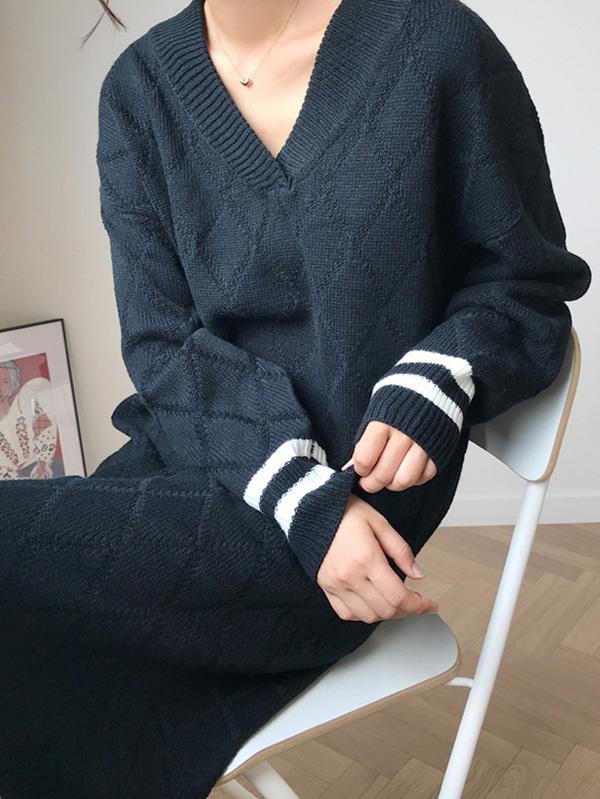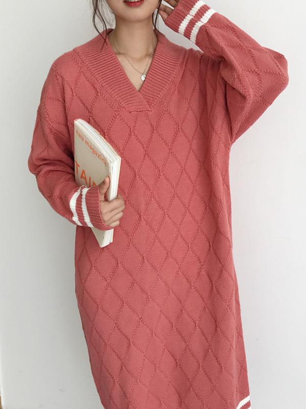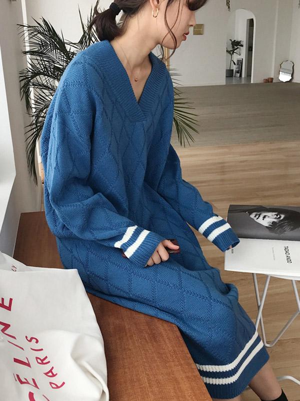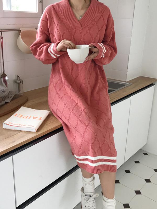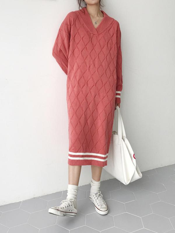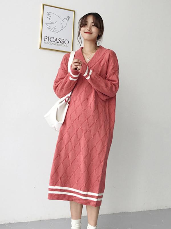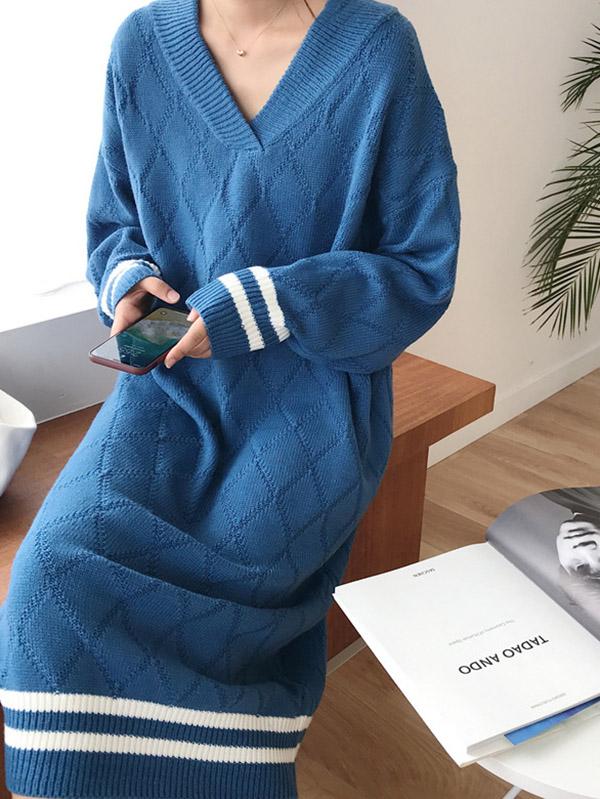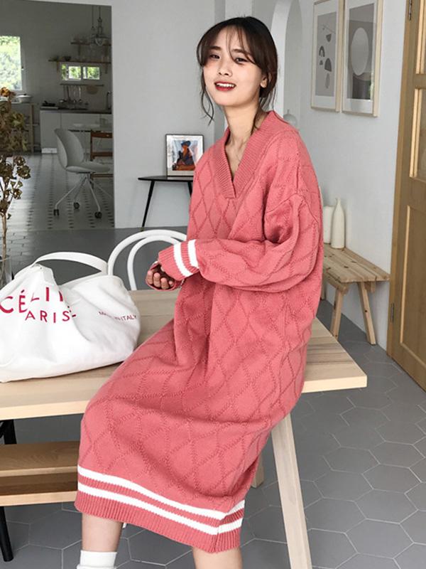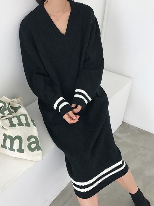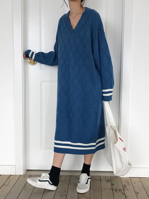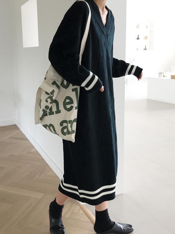 Personality V-Neck Knitting Sweater Dress