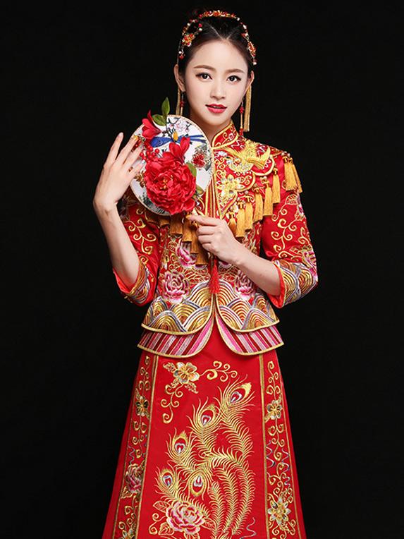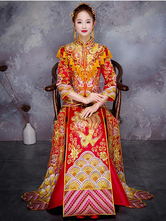 Phoenix Embroidered Tasseled Xiuhe Suit Toast Suit Wedding Dress
