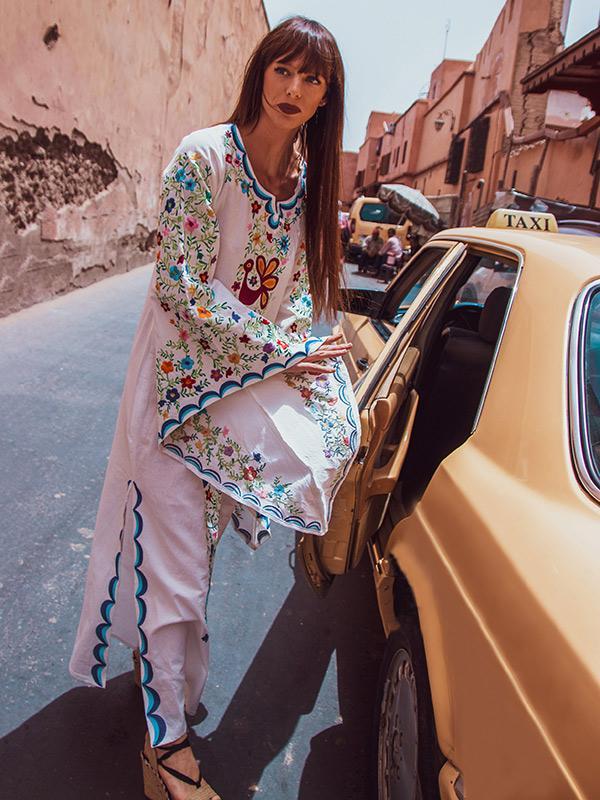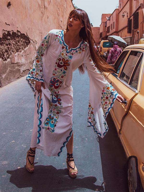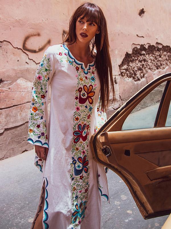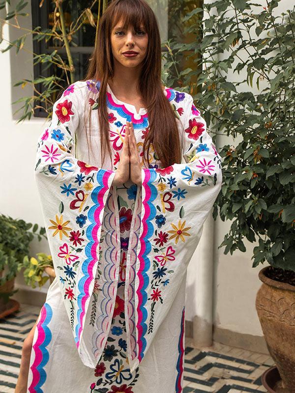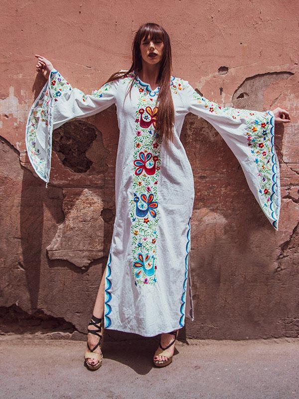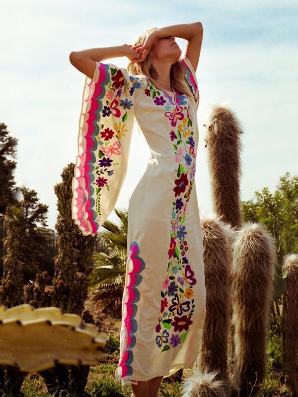 Pink Blue Fairy Sleeves Embroidered Maxi Dress
