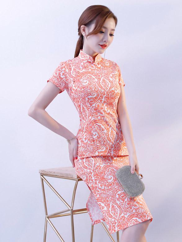 Pink Stretch Cotton Cheongsam Mini Dress