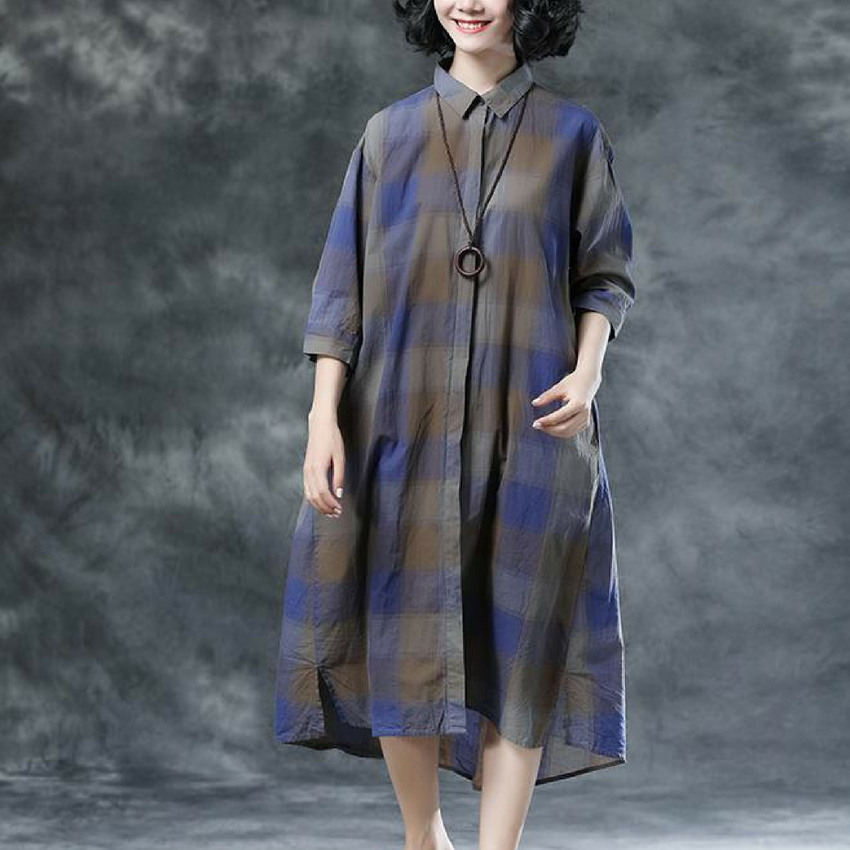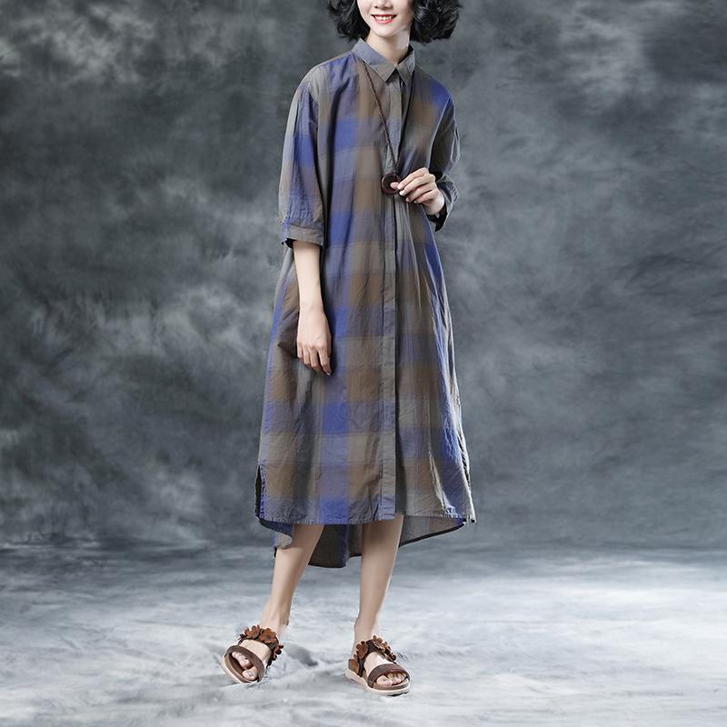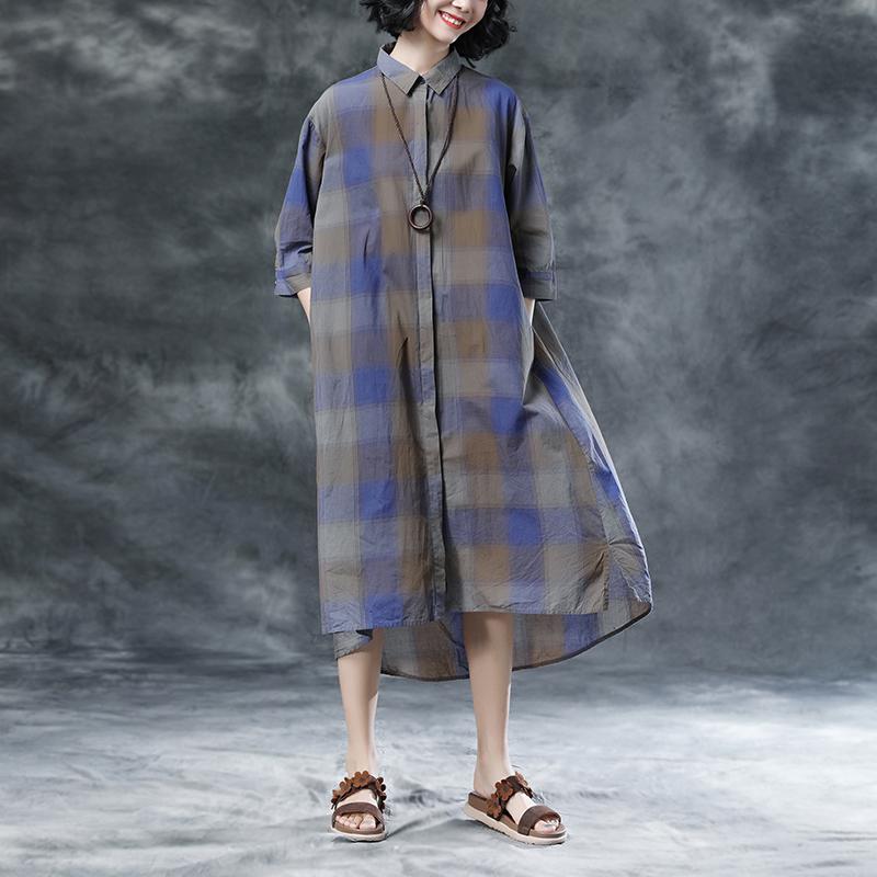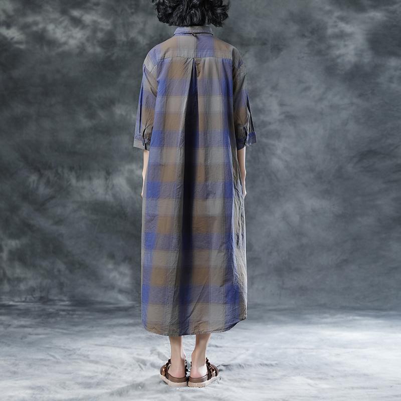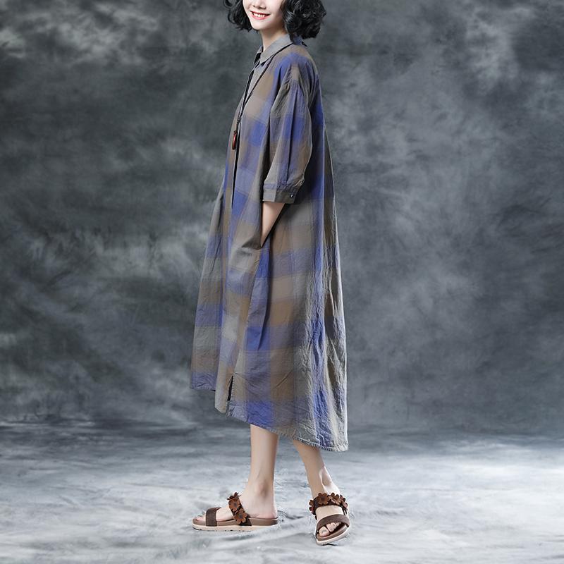 Plaid Casual Pockets Summer Half Sleeve Dress
