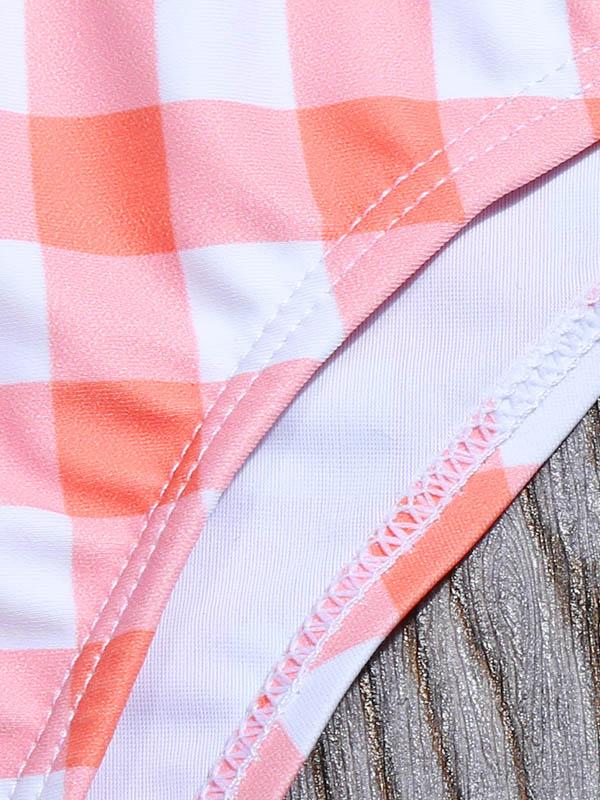 Plaid-Print Deep V-Neck Split Bikini Swimsuit
