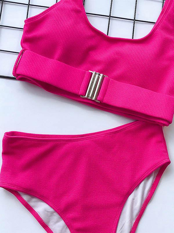 Plain Color Pit Bikini Swimsuit