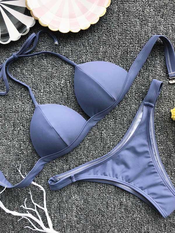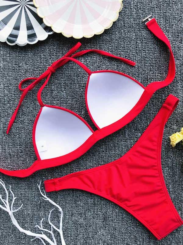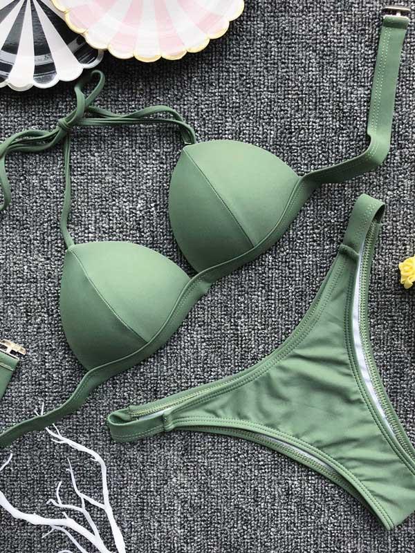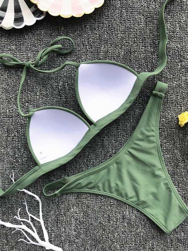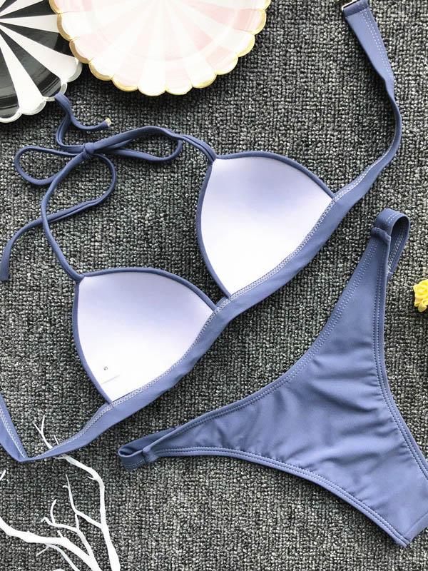 Plain Halter Narrow Straps Cami Bikini Swimsuit