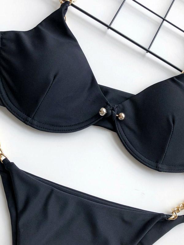 Plain Pin Buckle Chain Bikini Swimsuit