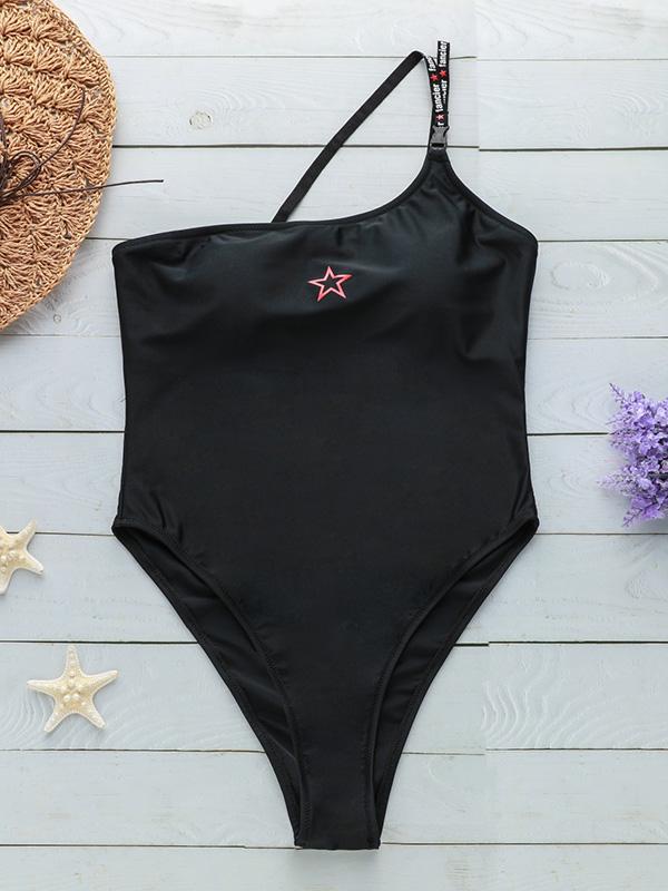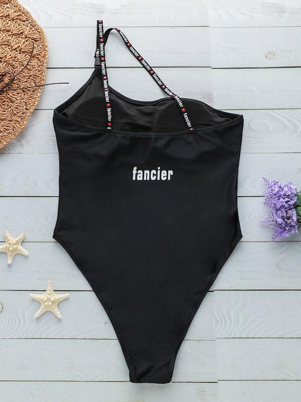 Plain Single Shoulder One-piece Swimwear