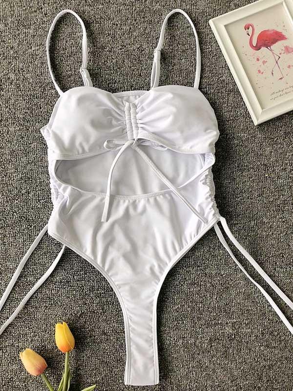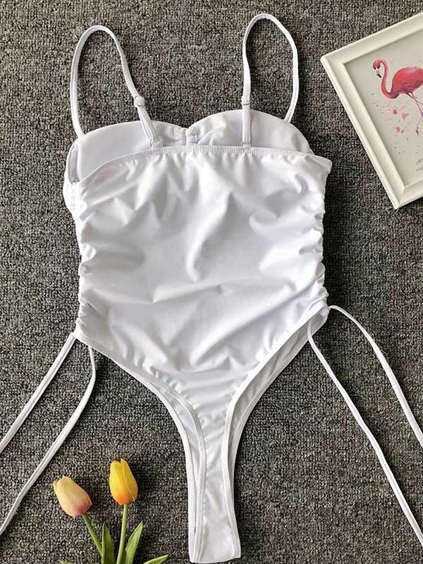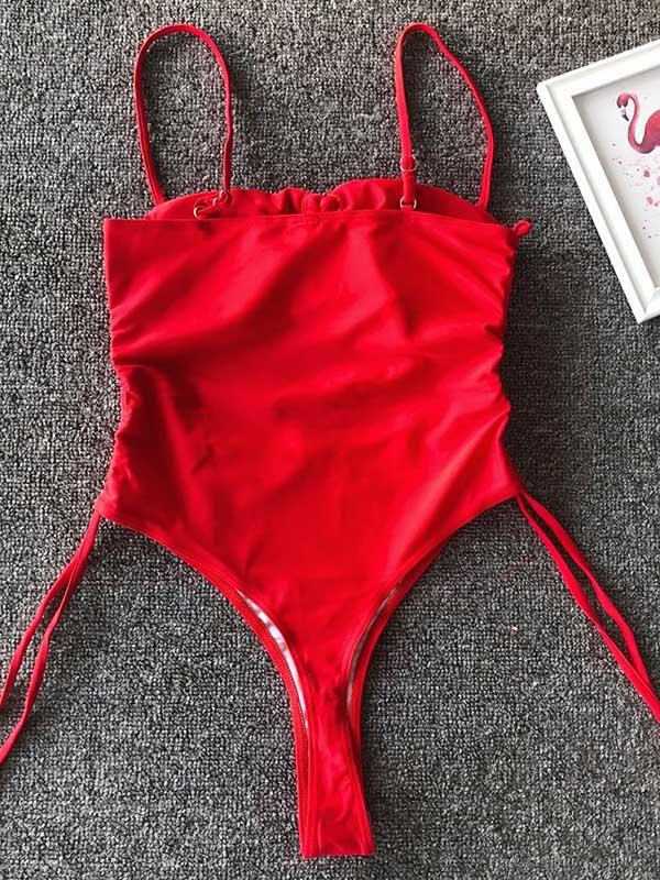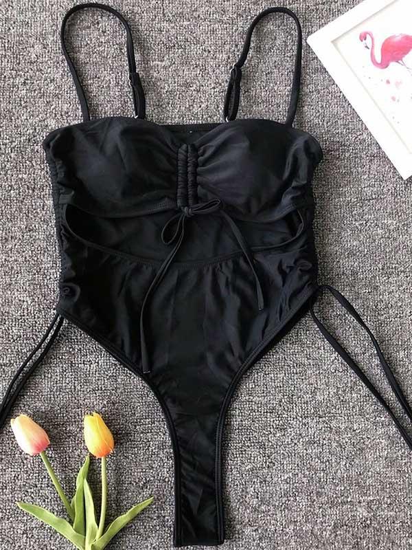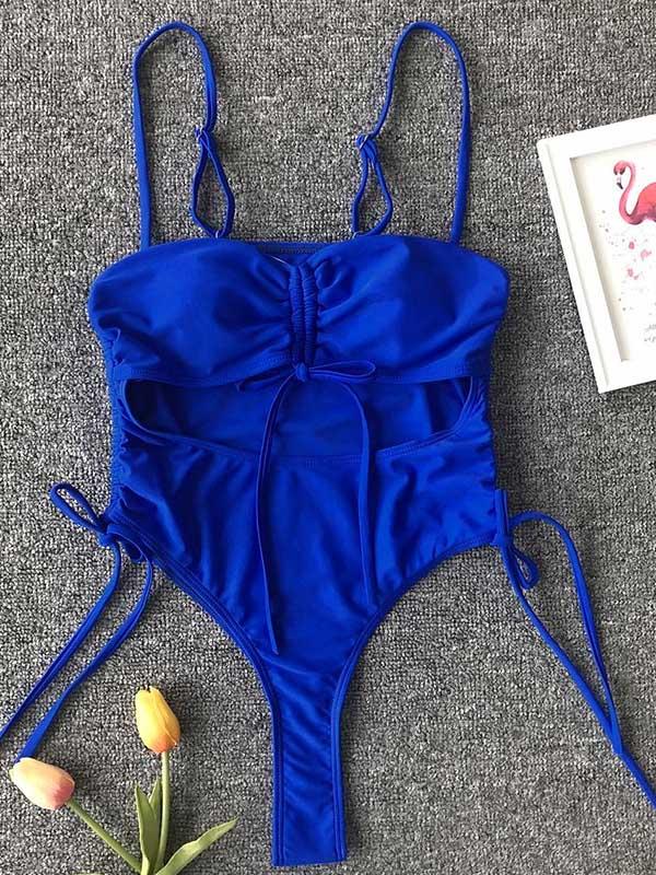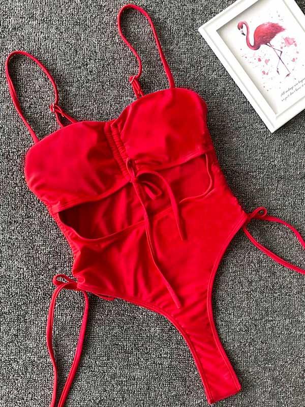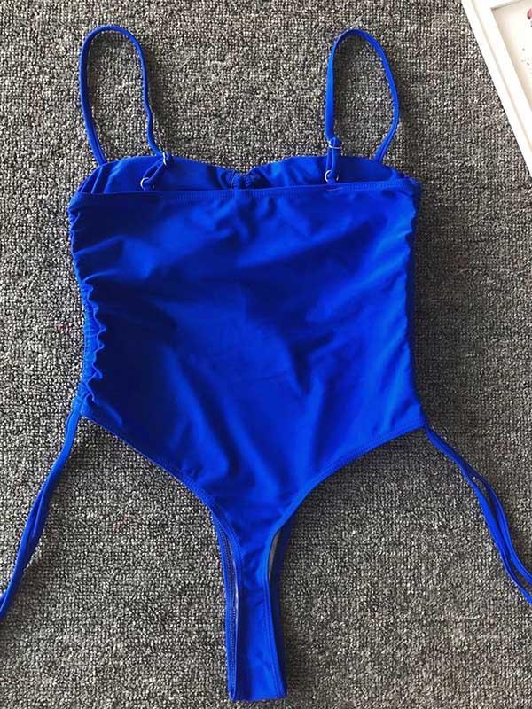 Plain Spaghetti-neck One-Piece Swimsuit