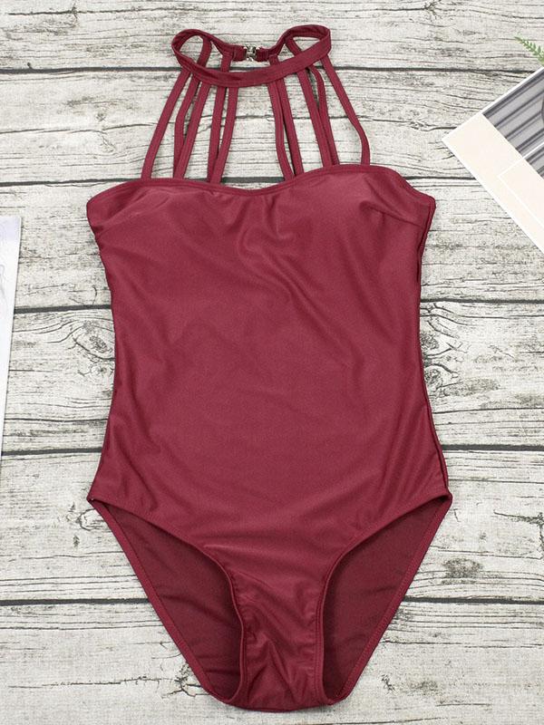 Plain Straps Backless One-Piece Swimwear